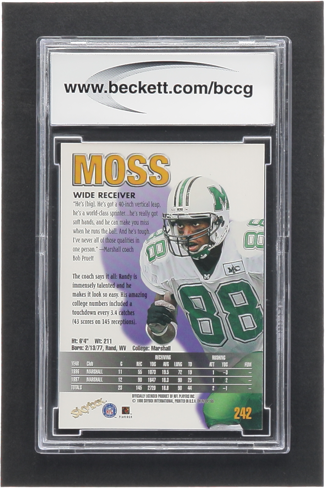 Randy Moss 1998 SkyBox Thunder #242 RC (BCCG 10)
