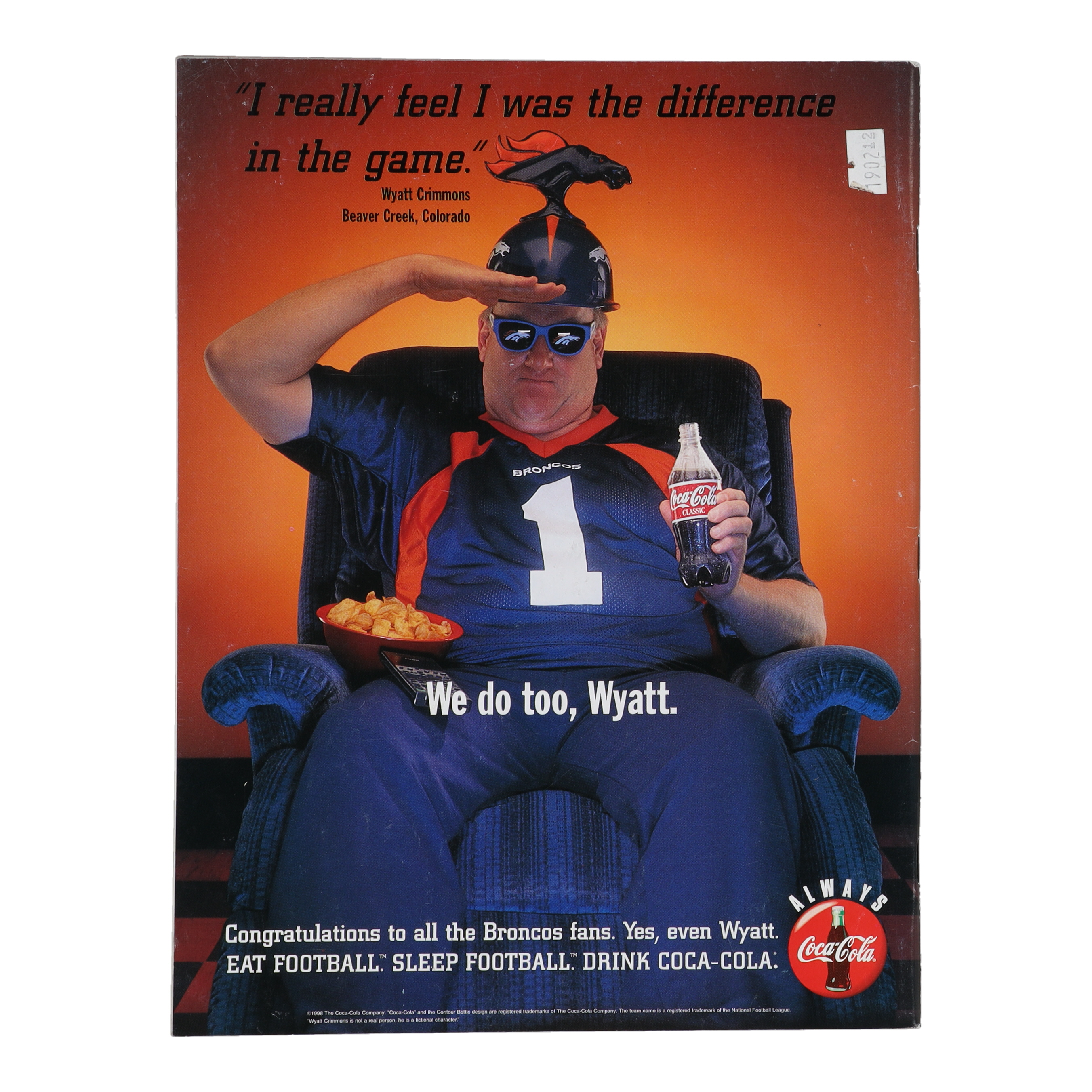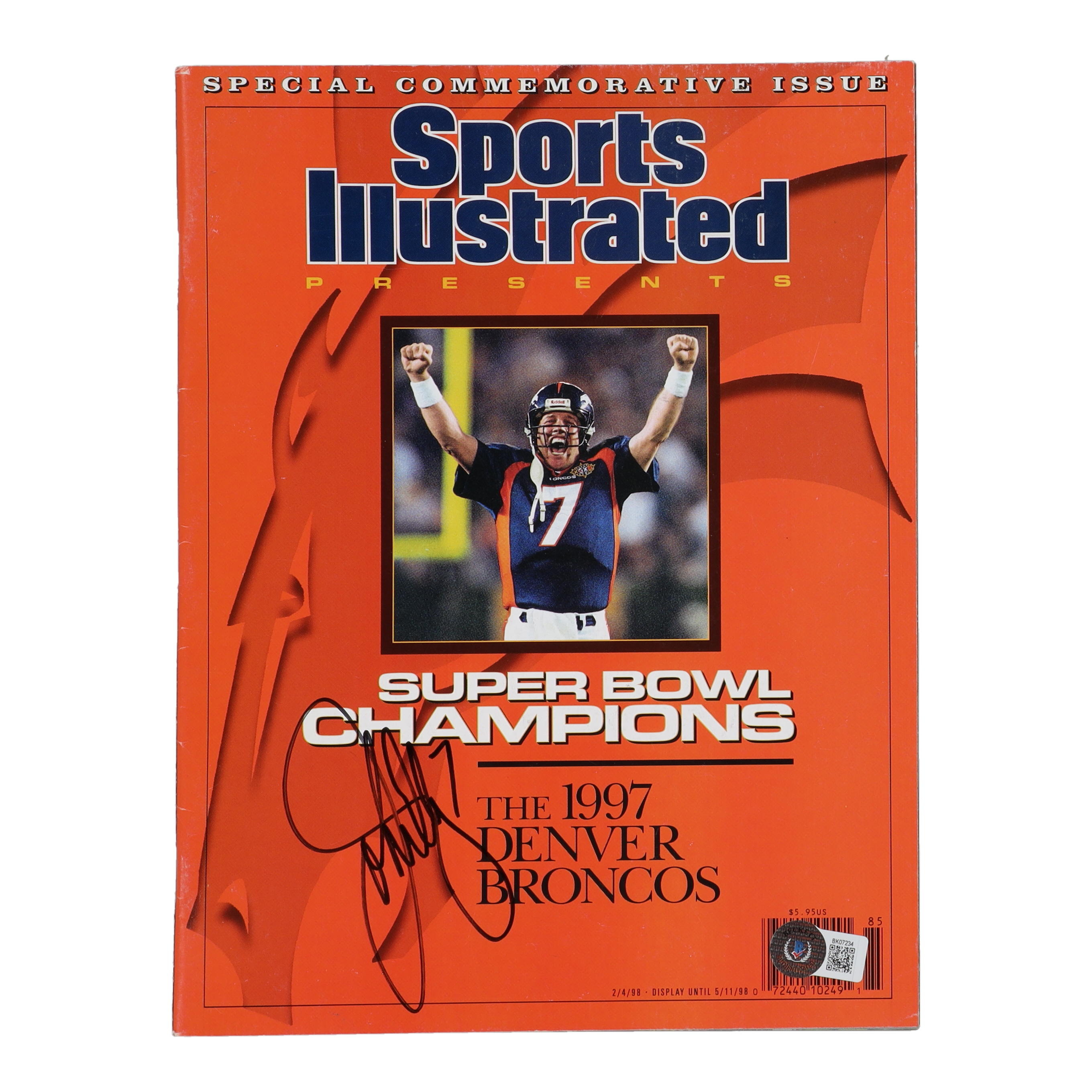 Magazine dated February 2, 1998 has been hand-signed on the cover by John Elway (Denver Broncos, HOF).