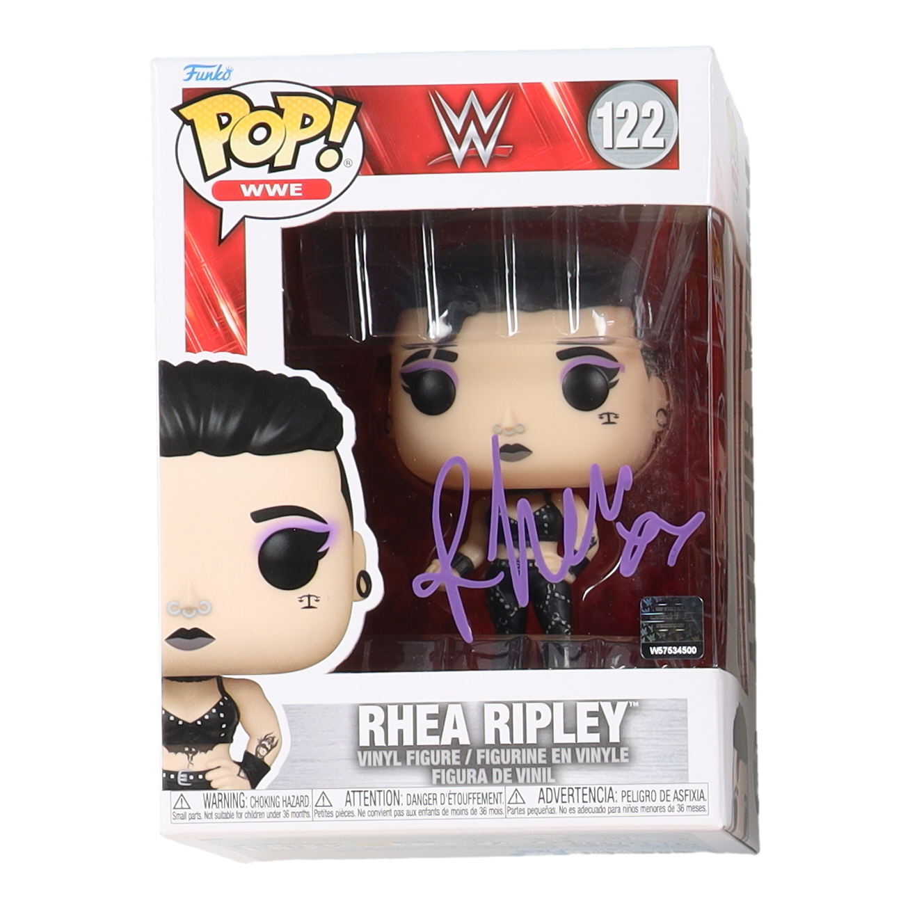 Funko pop! vinyl figure measures approximately 4" tall and has been hand-signed on the packaging by Rhea Ripley.