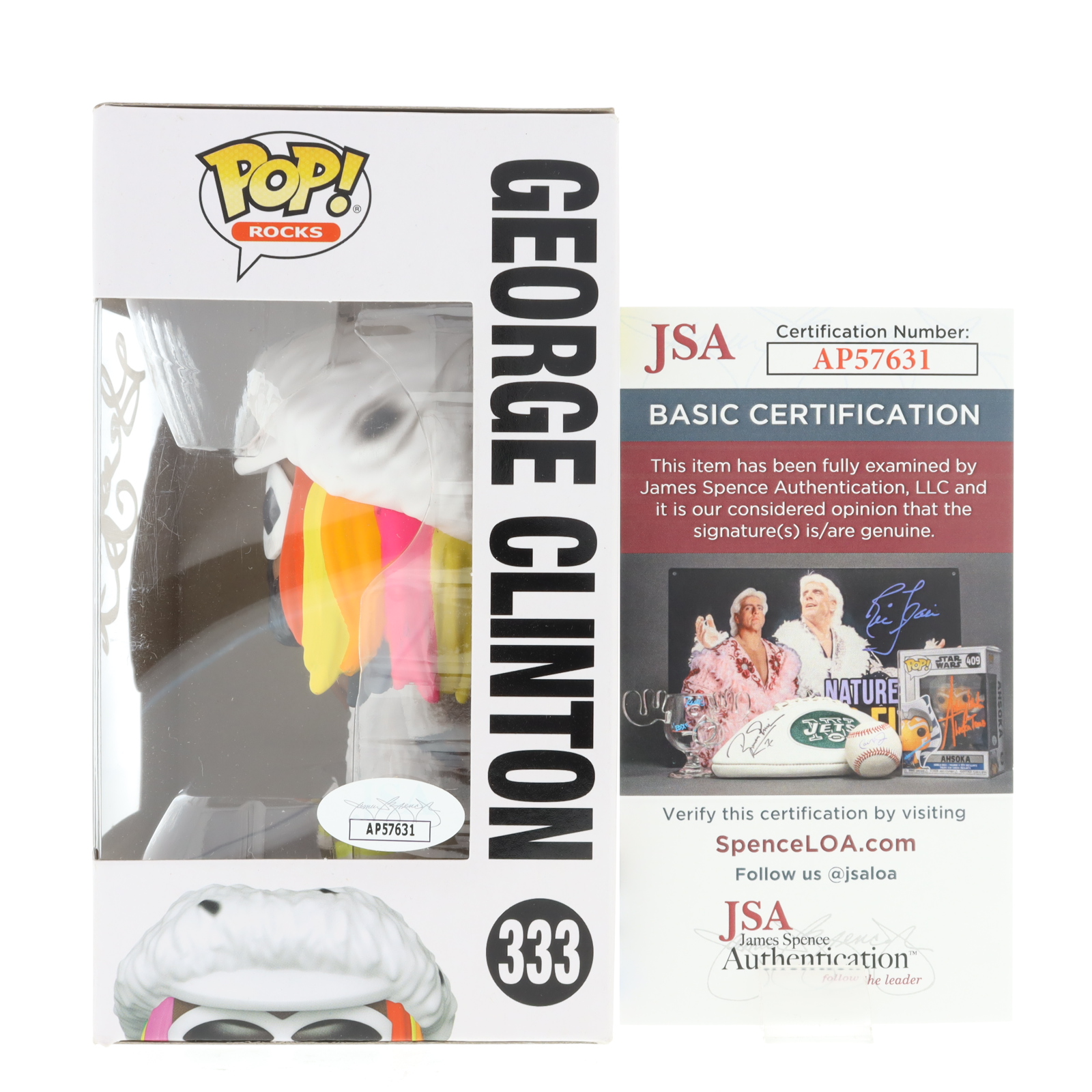 Figure measures approximately 4" tall. Hand-signed on the packaging by George Clinton.