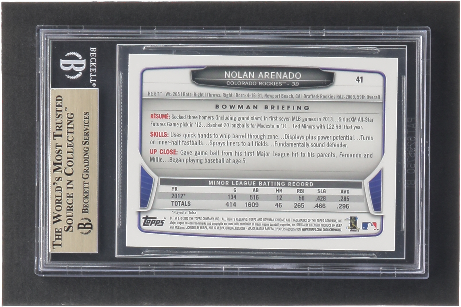 Nolan Arenado 2013 Bowman Chrome Draft #41 RC (BGS 9.5)