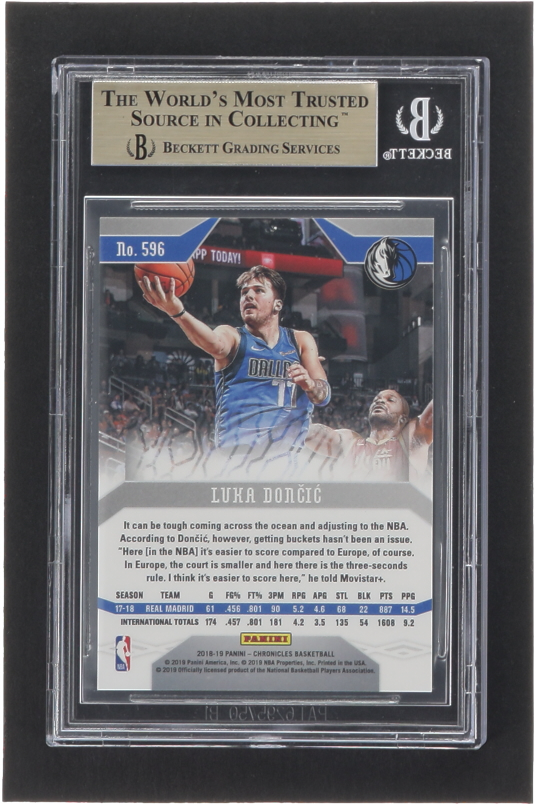 Luka Doncic 2018-19 Panini Chronicles #596 Phoenix RC (BGS 9.5)