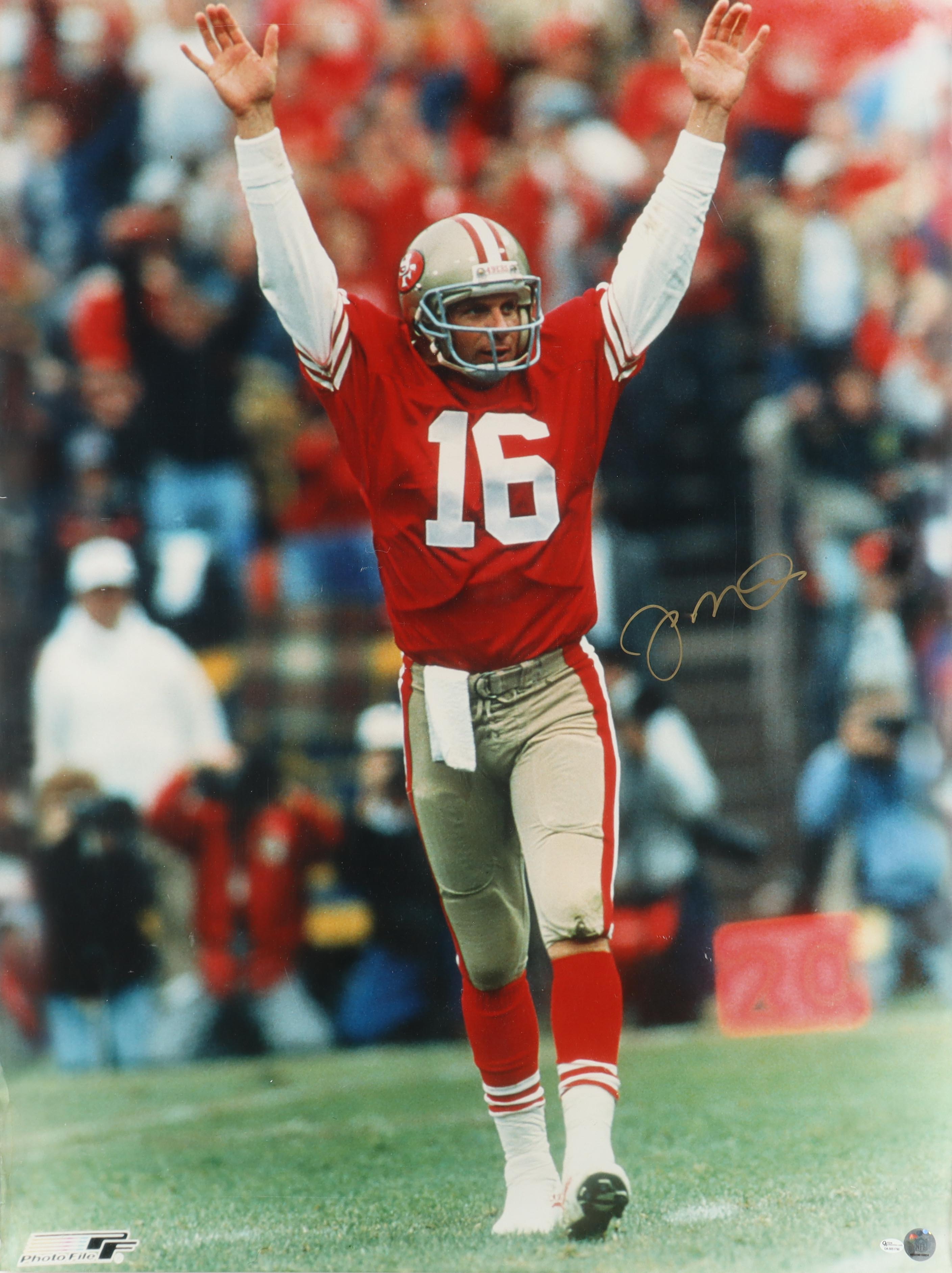 Photo measures 30" x 40" in size and has been hand-signed by Joe Montana (San Francisco 49ers, HOF).