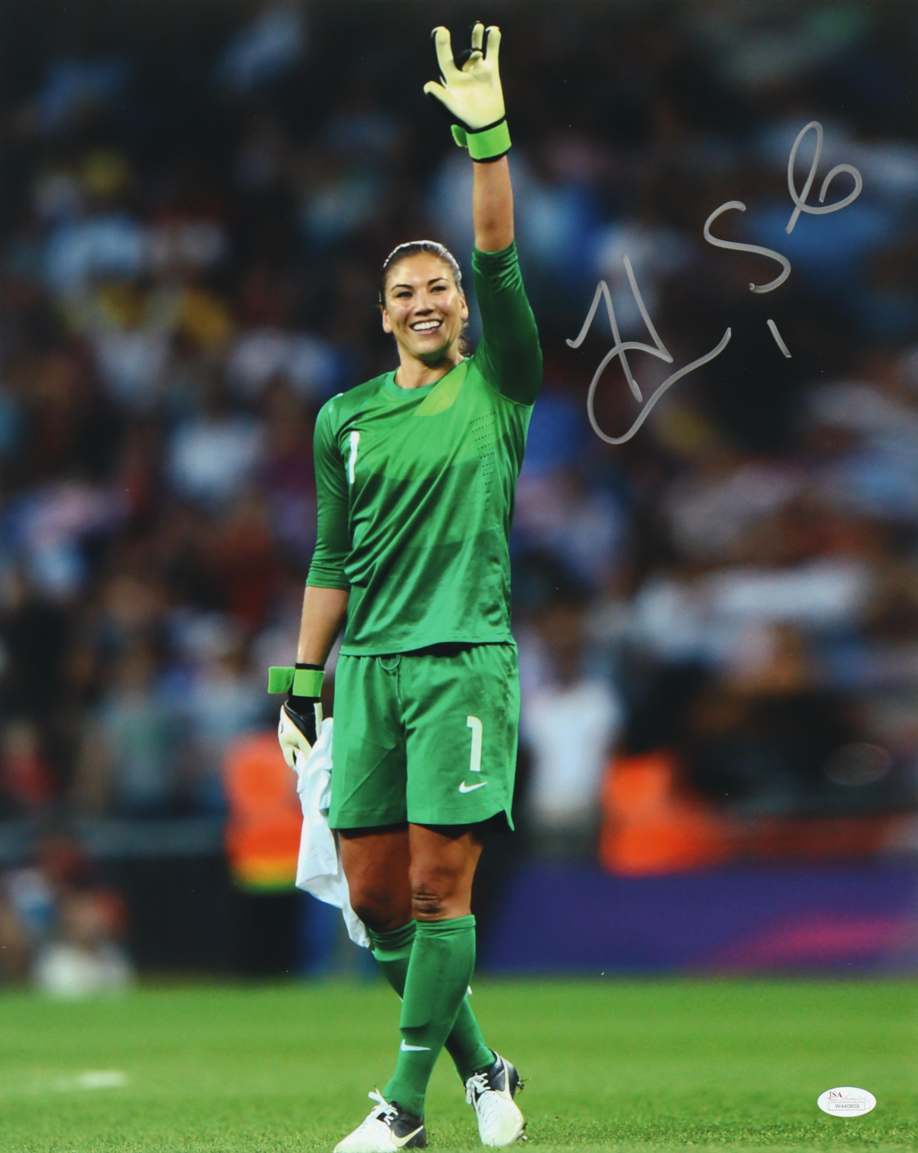 Photo measures 16" x 20" in size and has been hand-signed by Hope Solo.