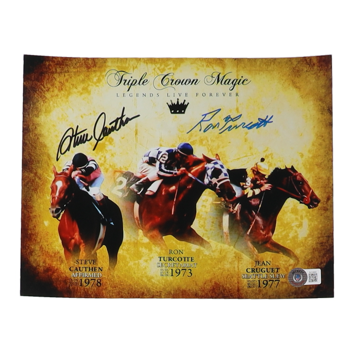 Ron Turcotte & Steve Cauthen Signed Triple Crown Collage 8x10 Photo (Beckett)