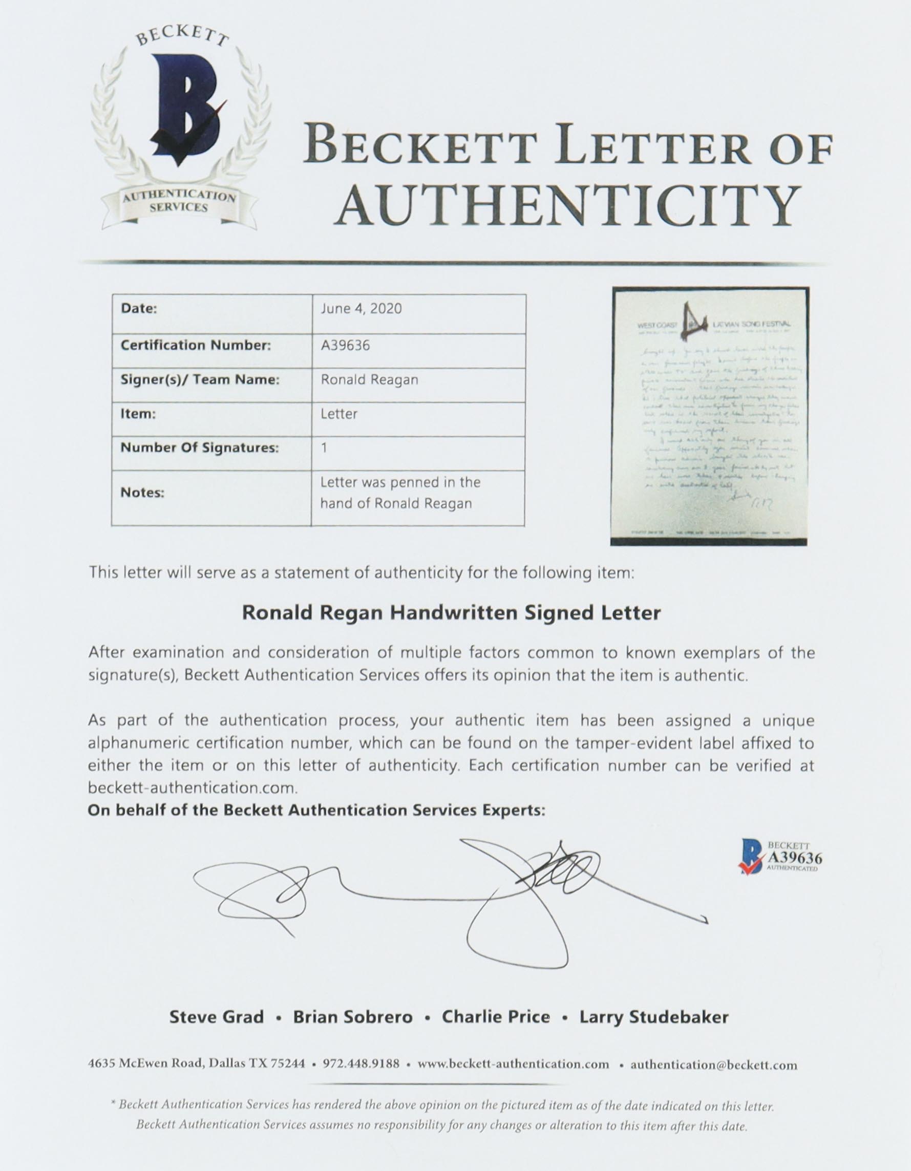 The autograph includes an official Beckett Authentication Services hologram and matching LOA for authenticity purposes.