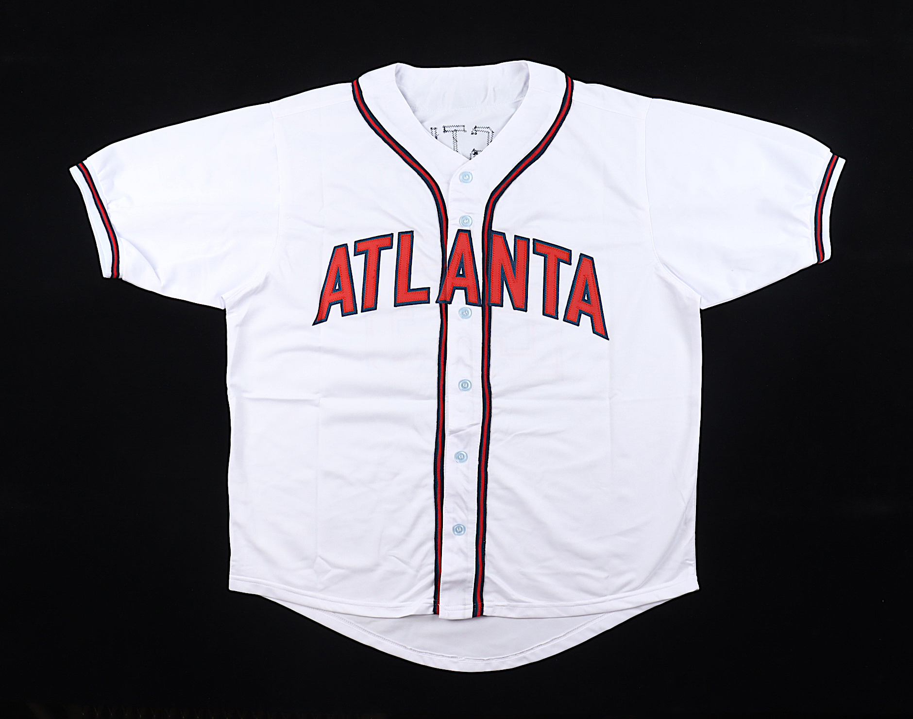 Custom jersey with everything sewn on, size XL. Hand-signed by David Justice.