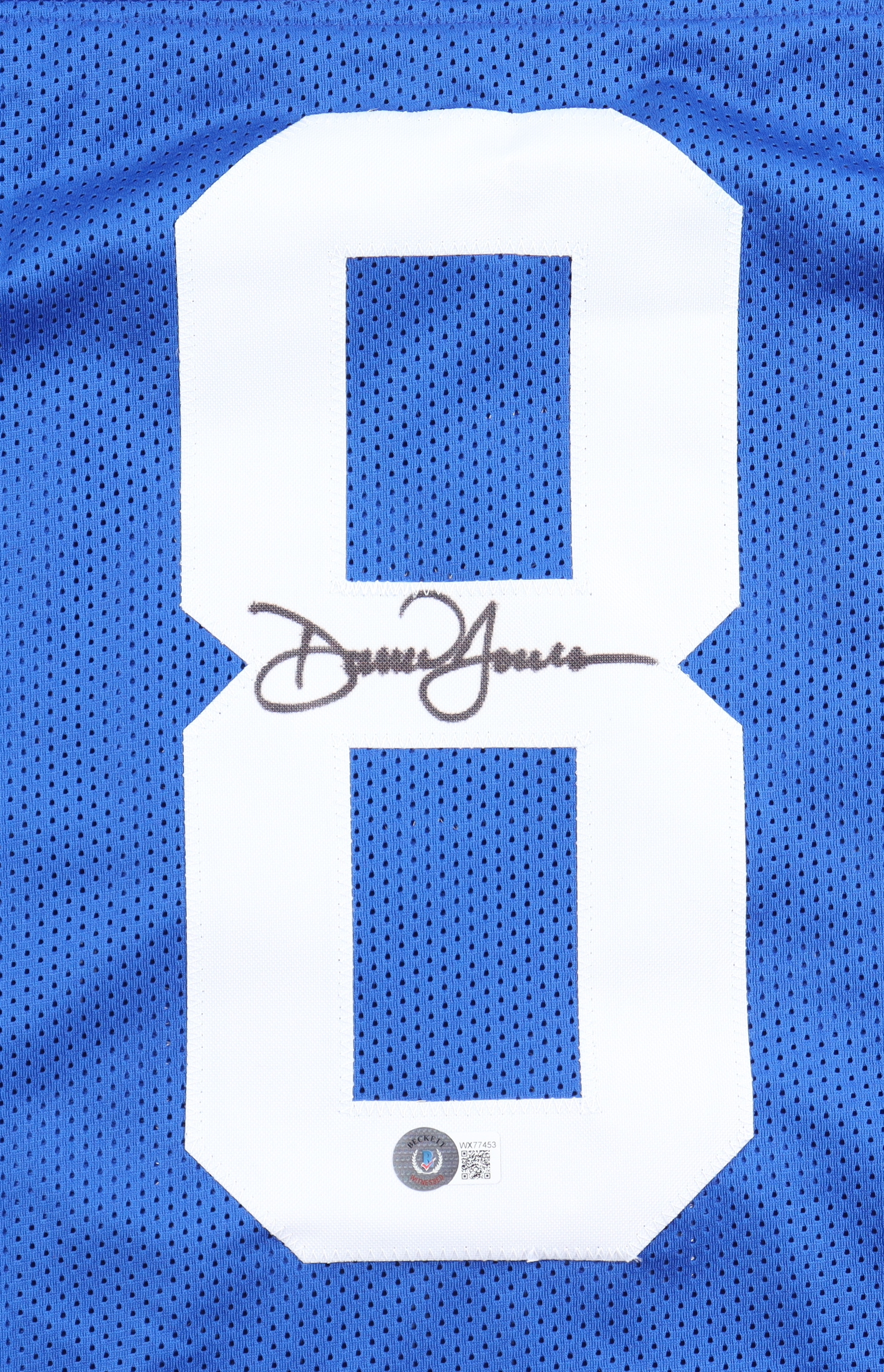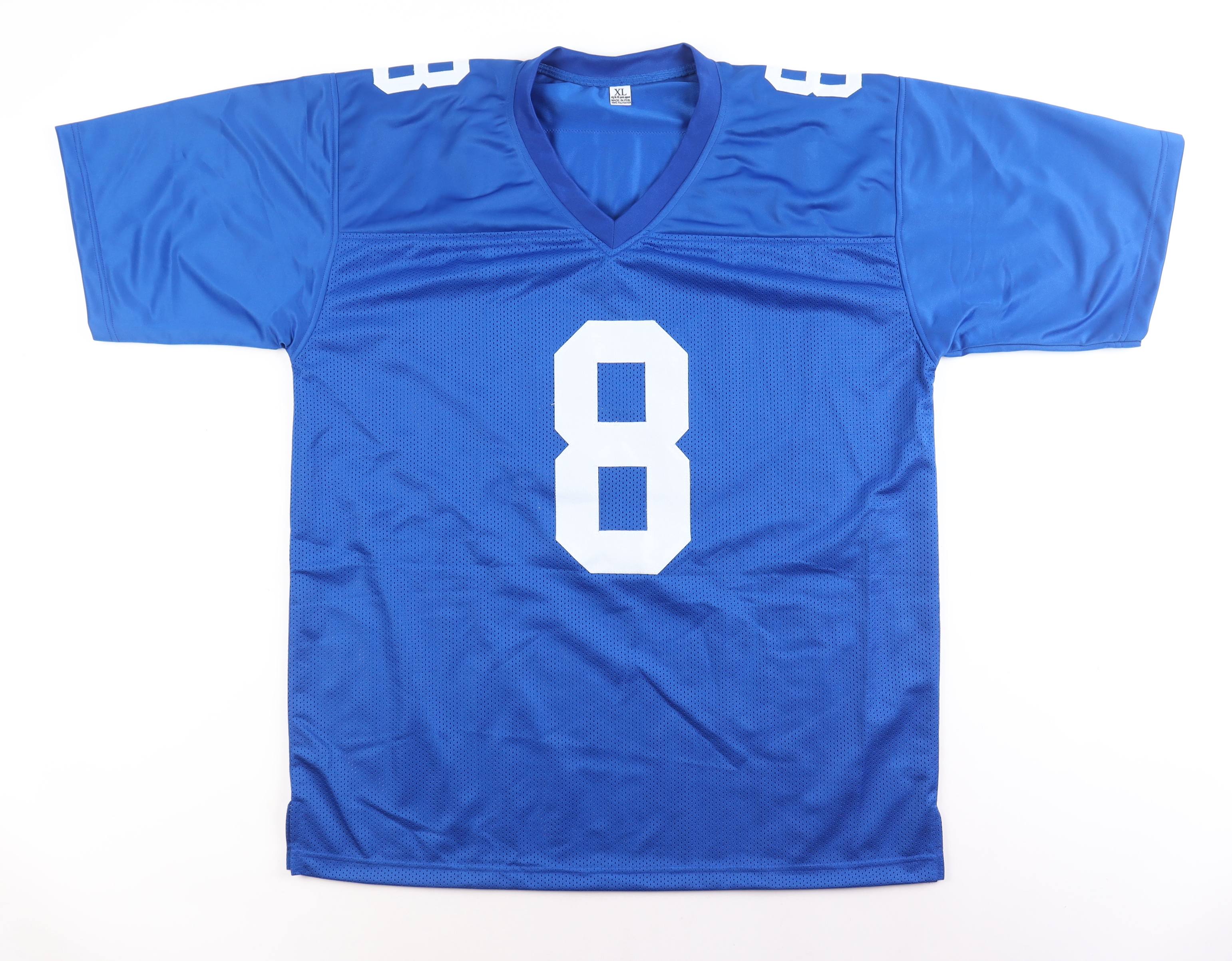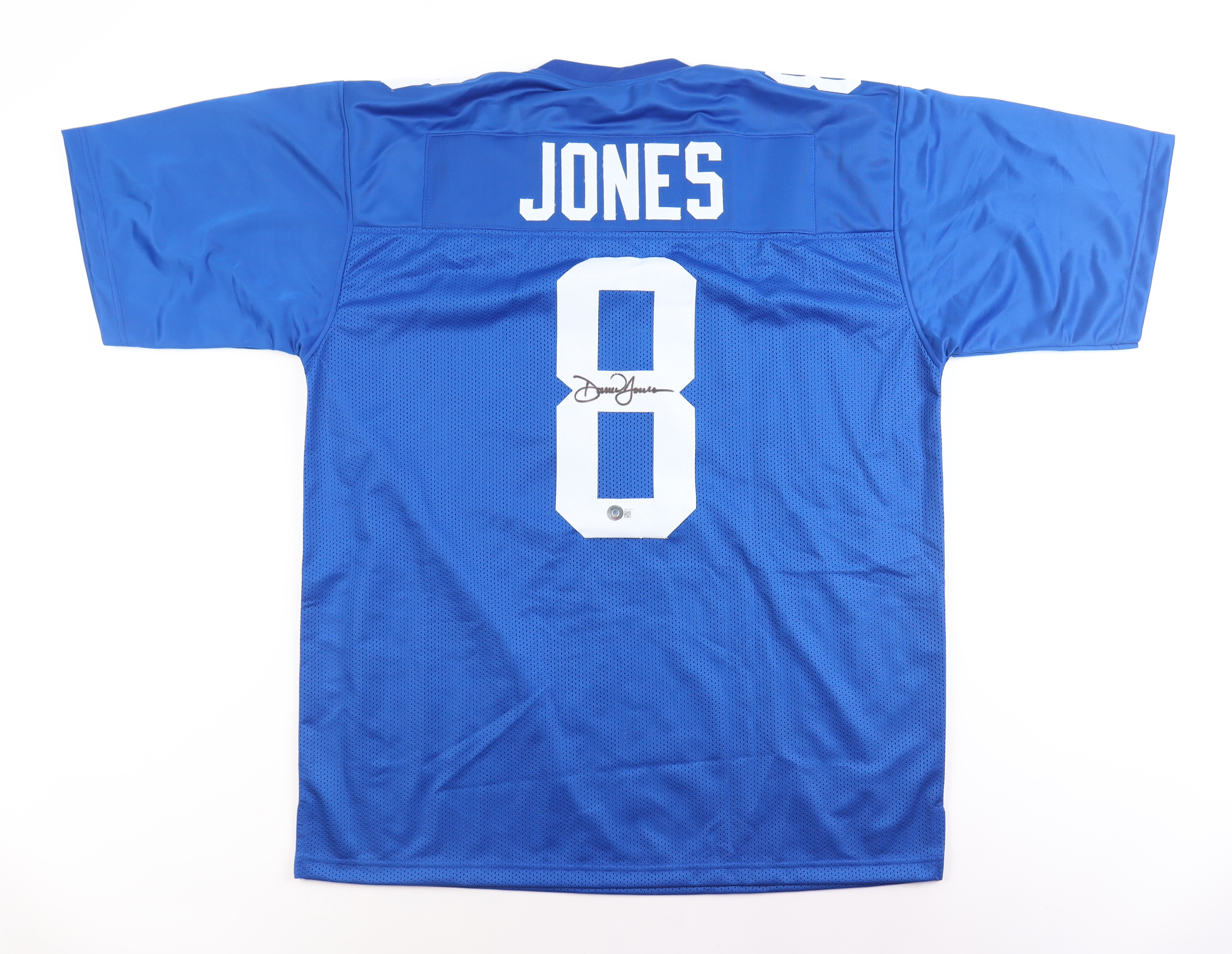 Custom style jersey. Everything is sewn on size XL. Hand-signed by Daniel Jones.