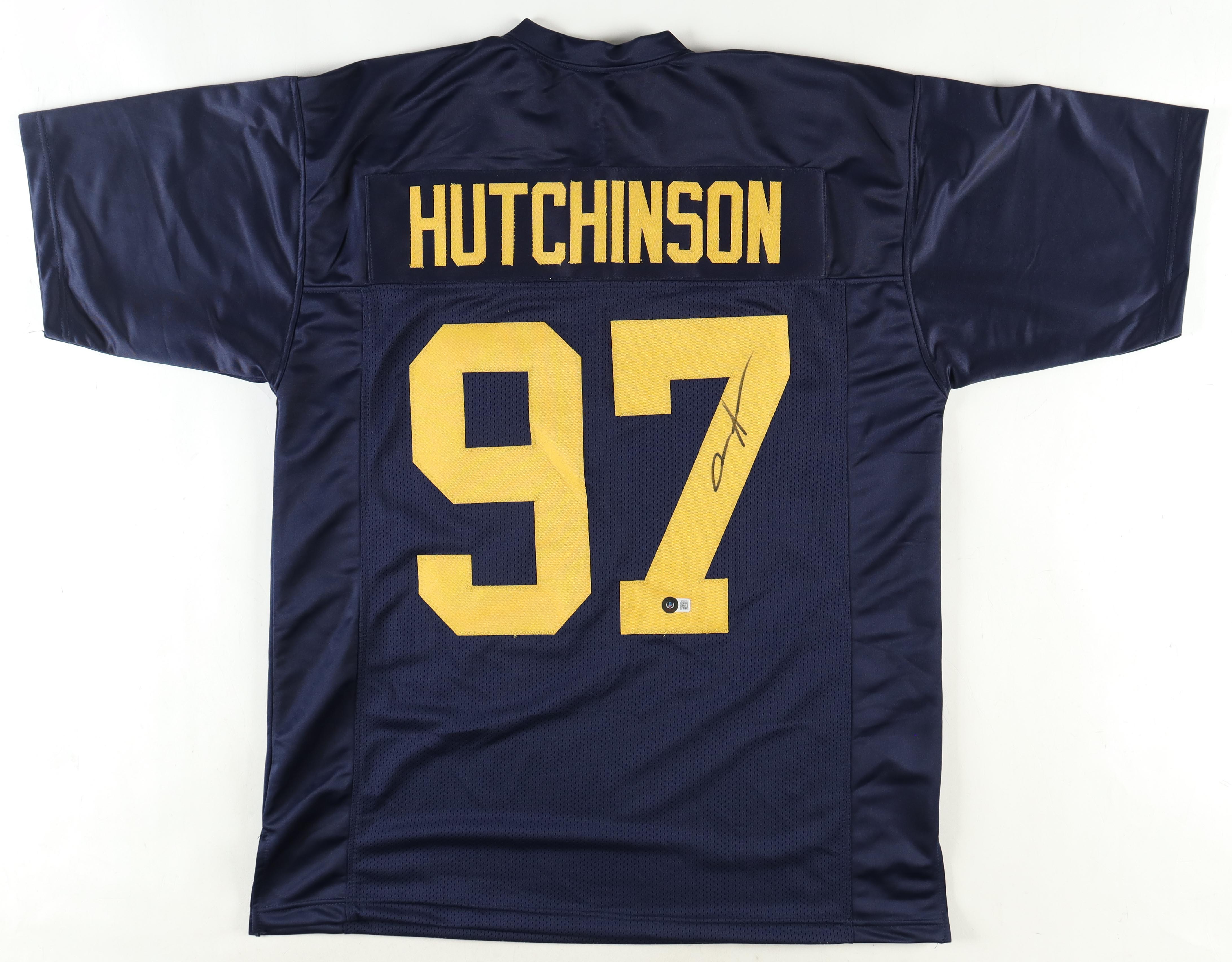 Custom jersey. Everything sewn on, size XL. Hand-signed by Aidan Hutchinson (Michigan Wolverines).