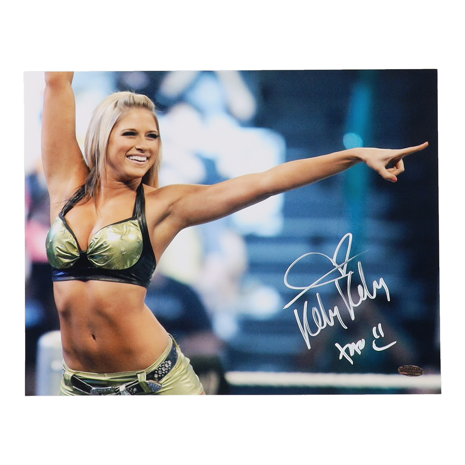 Photo measures 11" x 14" in size and has been hand-signed and inscribed by Kelly Kelly.