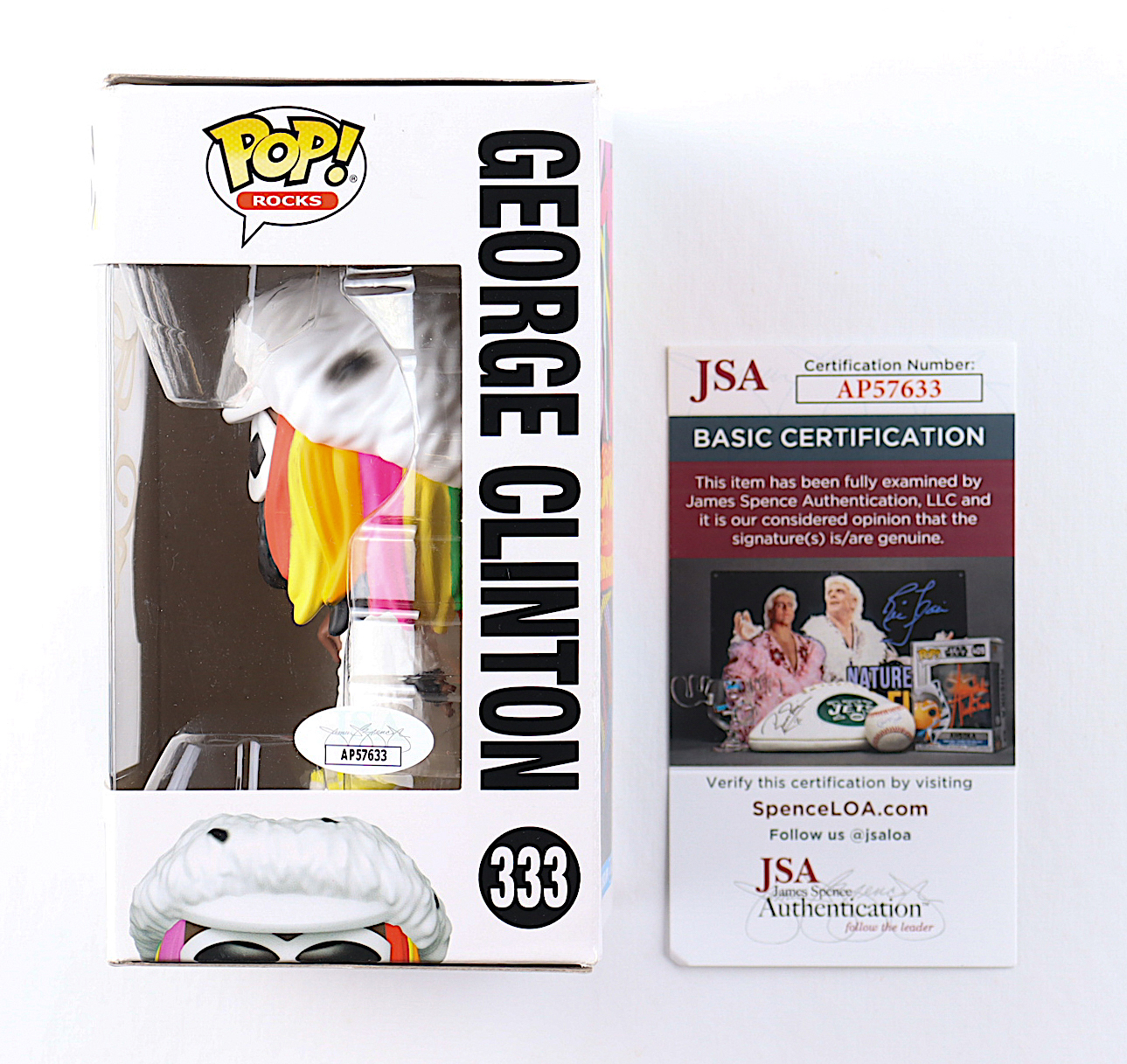Funko Pop! figure measures approximately 4" tall and comes in original packaging. Hand-signed on the box by George Clinton. Please note, packaging is creased, ripped and damaged in several locations. Refer to photos for condition of the item.