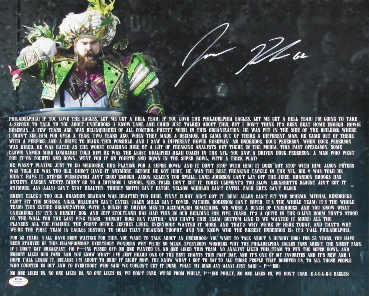 Photo measures 16" x 20" in size and has been hand-signed by Jason Kelce (Philadelphia Eagles)
