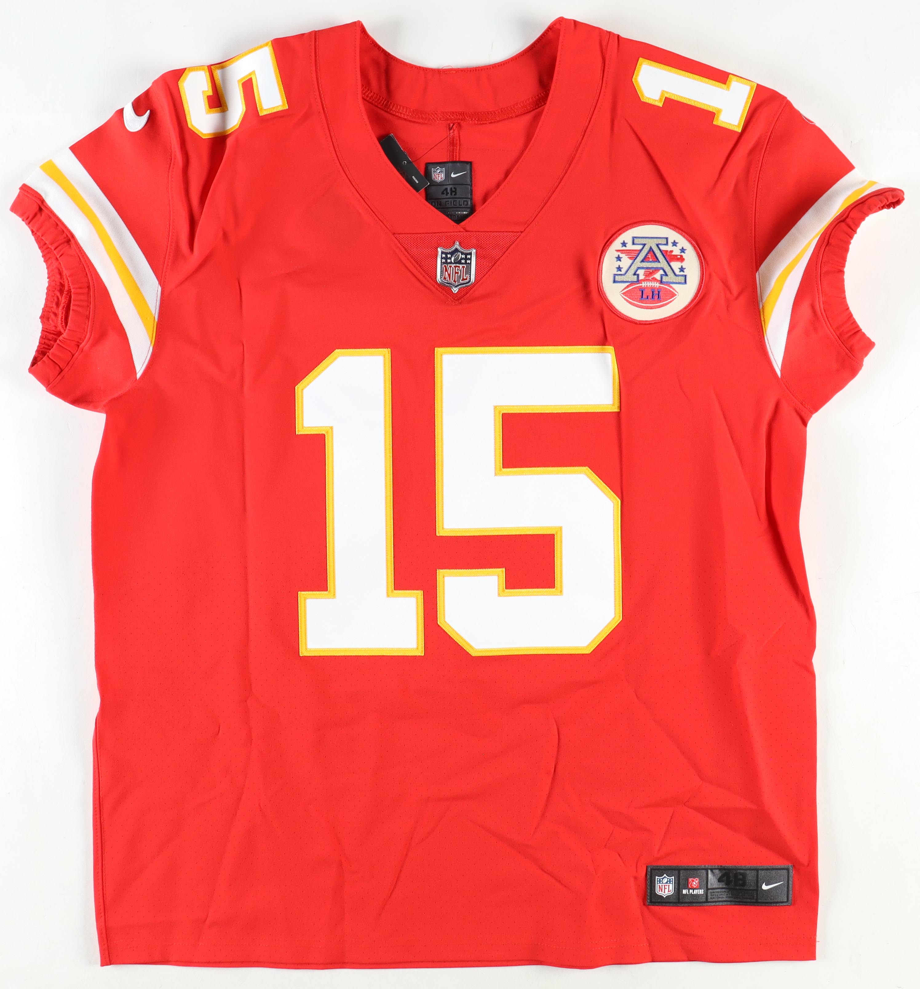 Nike Vapor Elite style jersey with everything sewn on, size 48. Hand-signed by Patrick Mahomes II (Kansas City Chiefs).