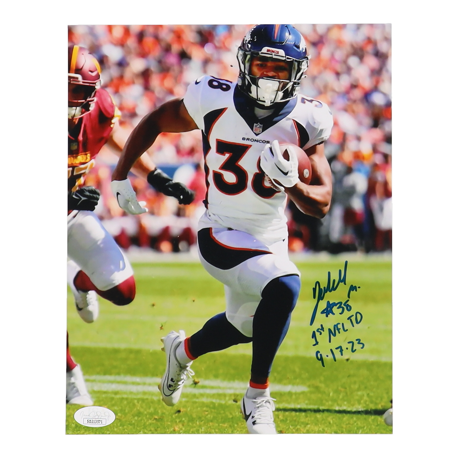 Jaleel McLaughlin Signed Broncos 8x10 Photo Inscribed "1st NFL TD 9-17-23" (JSA)