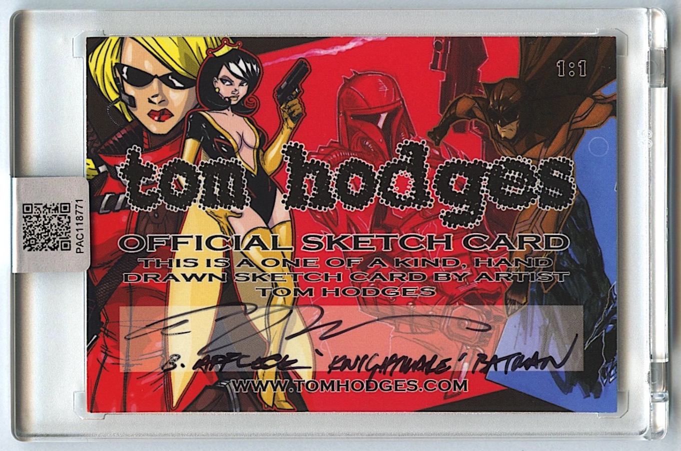 This original sketch card includes original art by renowned comic book artist, Tom Hodges. Also includes a character name inscription on the back by the artist.