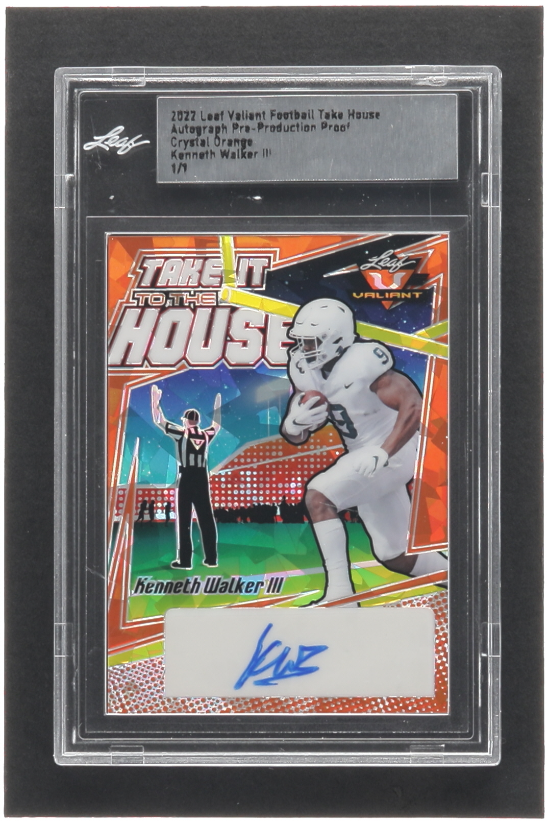 Kenneth Walker III 2022 Leaf Valiant Take it to the House Crystal Orange Pre-Production Proof #NNO #1/1 RC (Leaf)