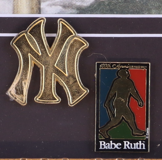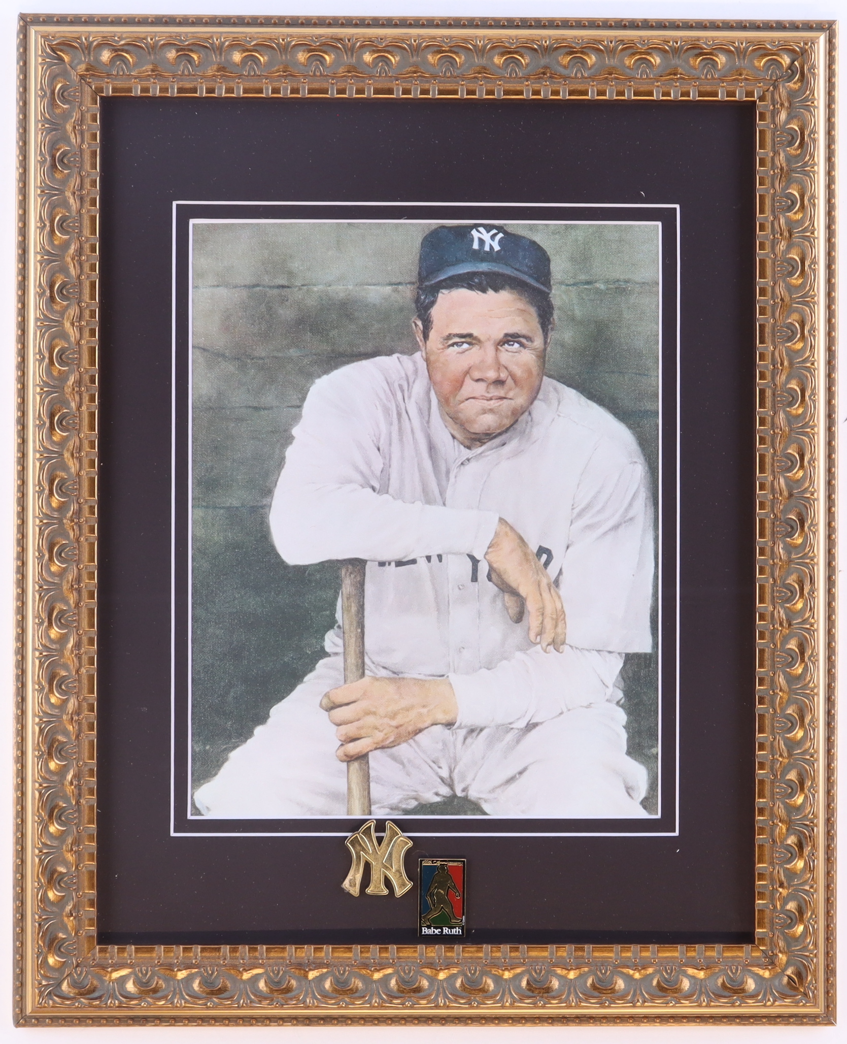 Babe Ruth Yankees Custom Framed Art Print Display with Babe Ruth 100th Anniversary & Yankees Logo Metal Pin