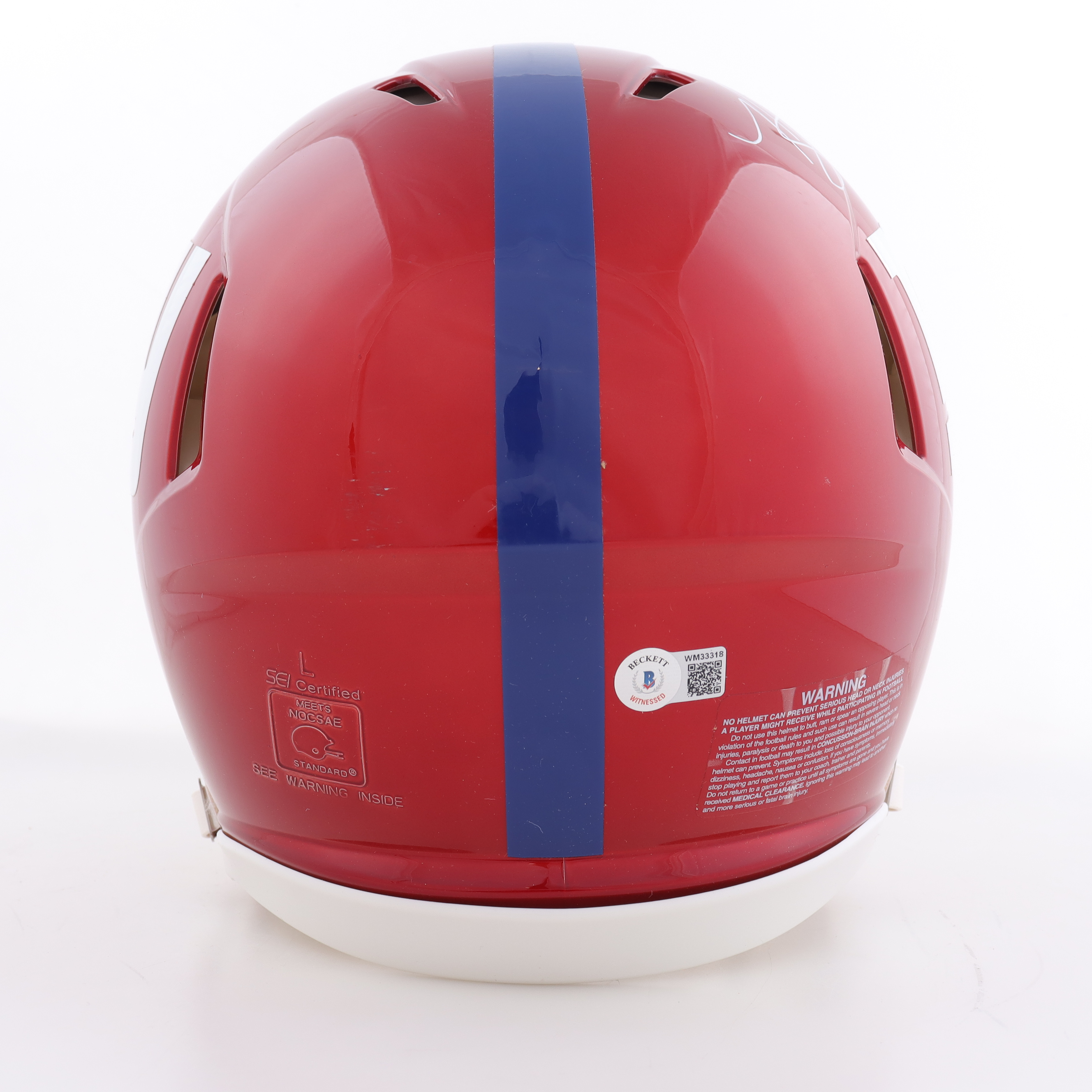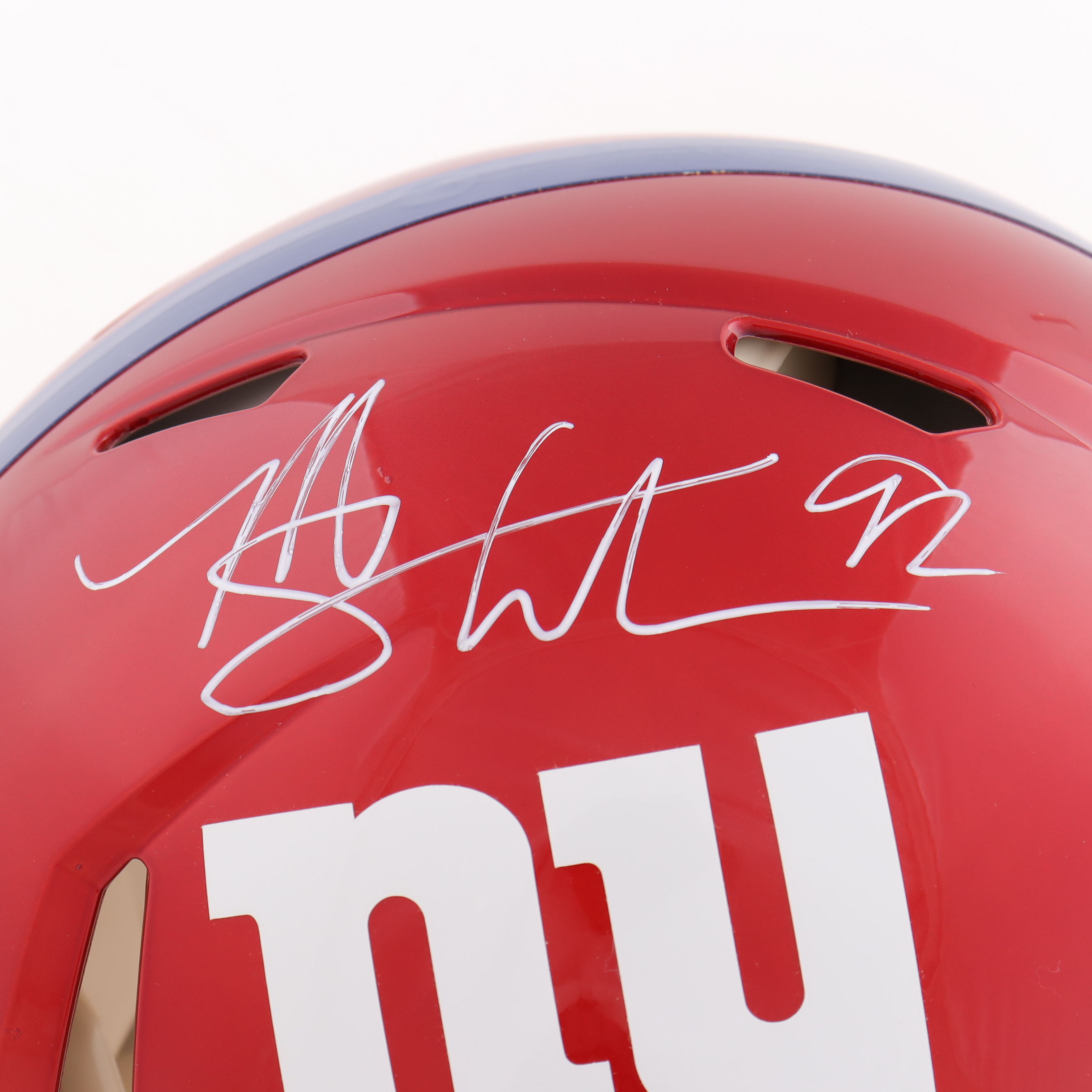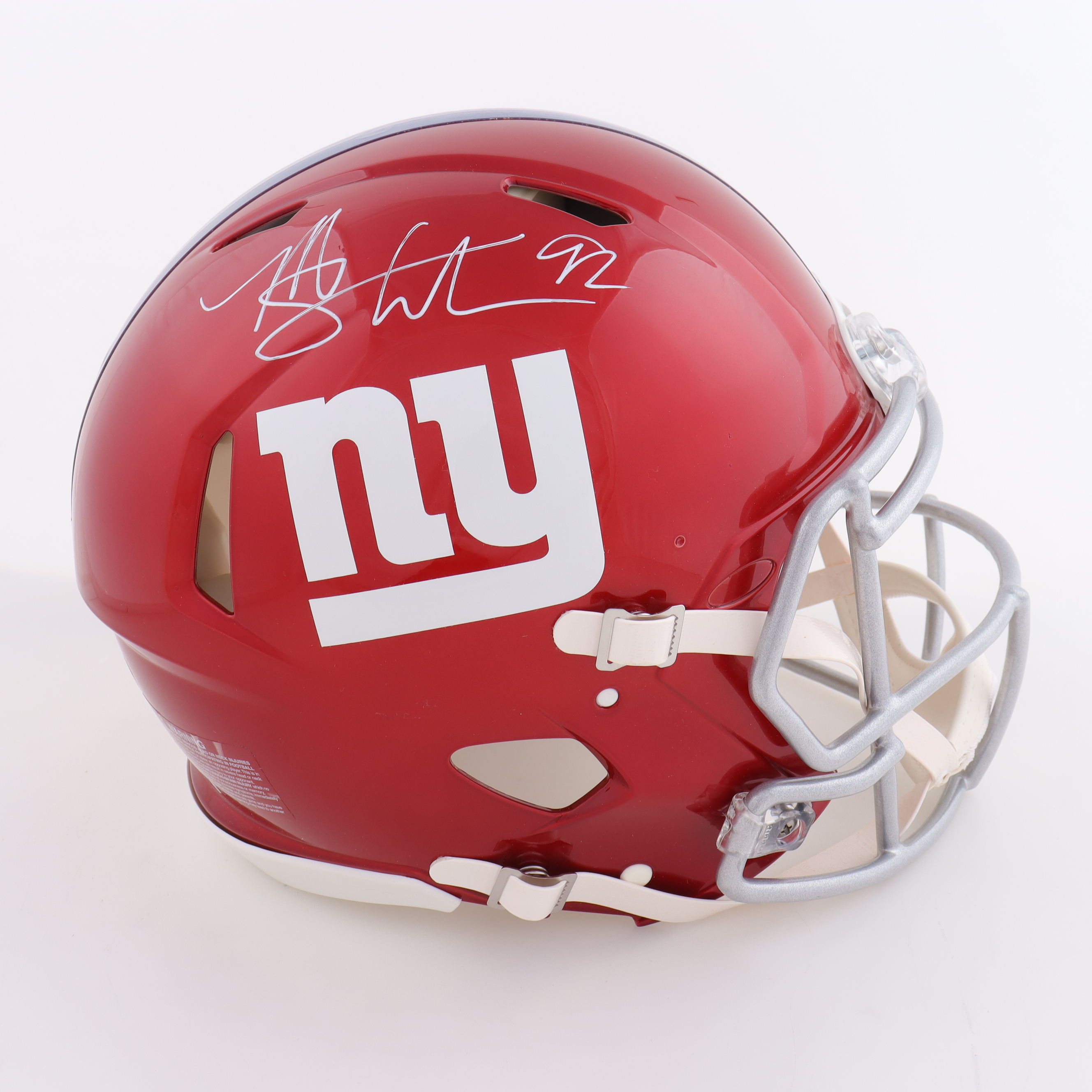 Riddell New York Giants full-size authentic on-field Flash Alternate Speed helmet. Hand-signed by Michael Strahan (HOF).