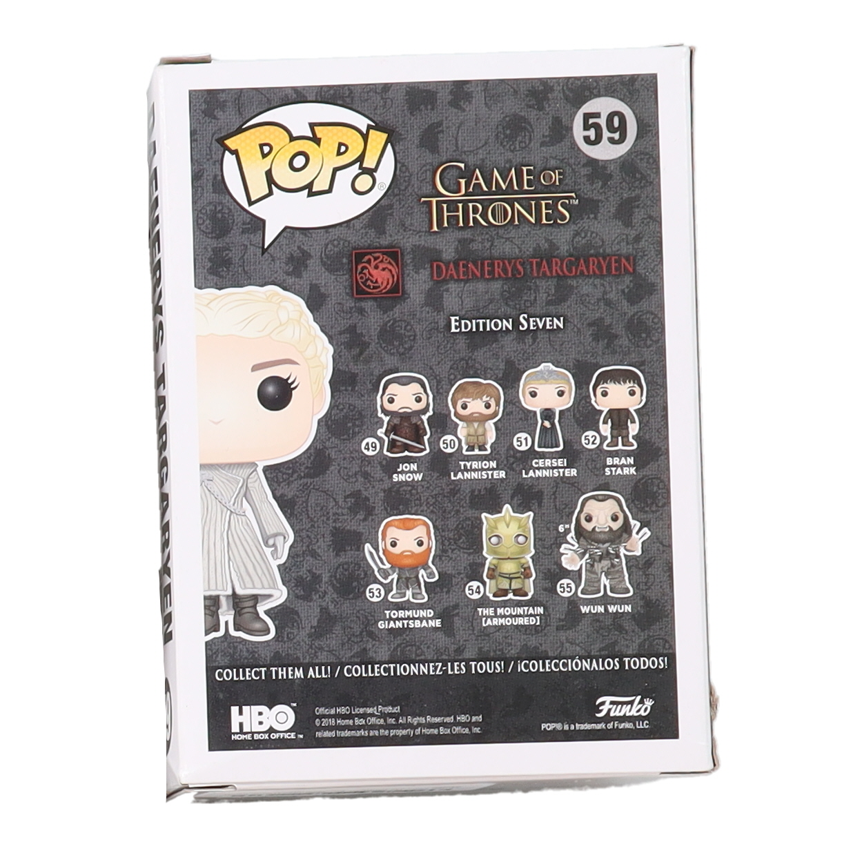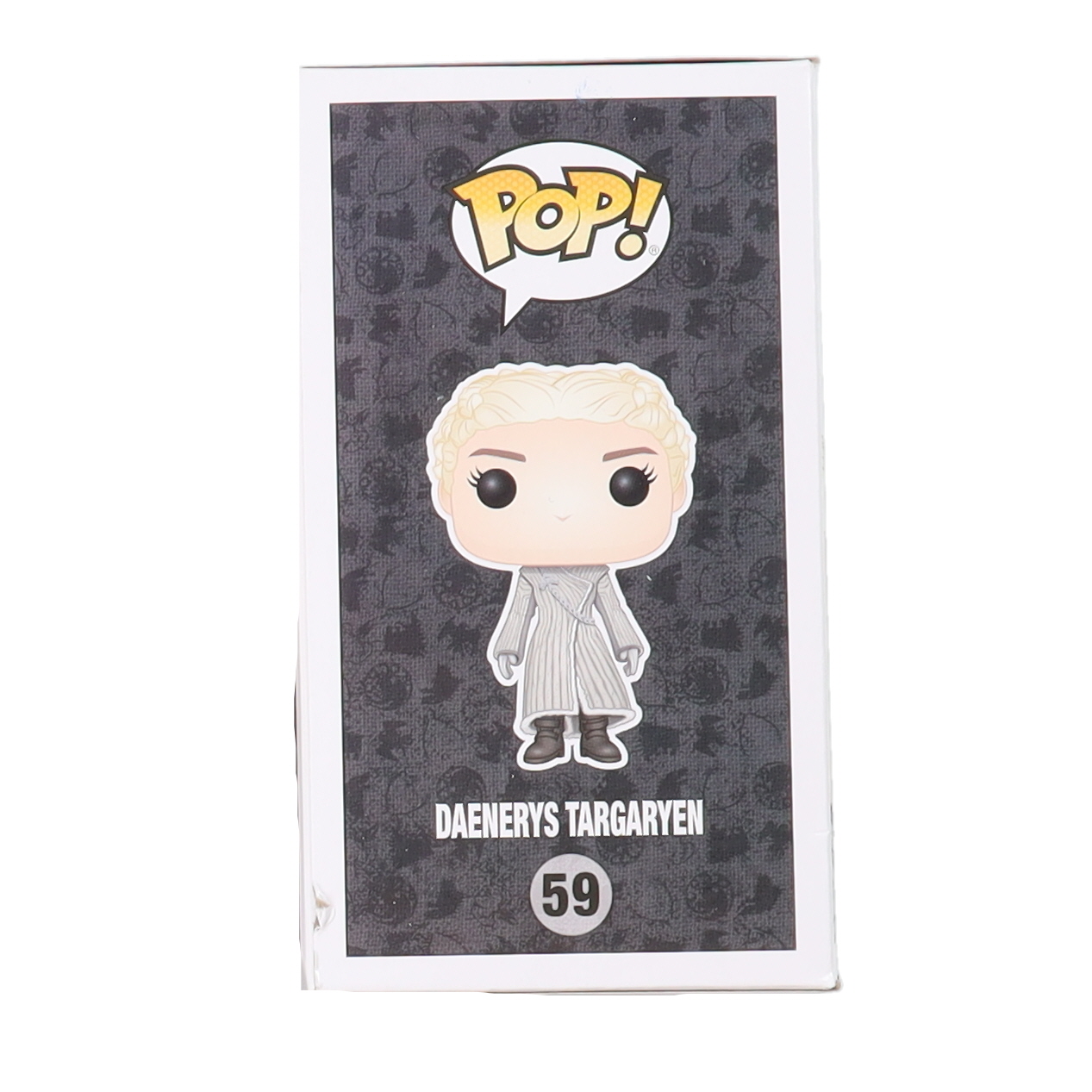 Funko Pop! vinyl figure measures approximately 4" tall and has been hand-signed on the packaging by Emilia Clarke (Daenerys Targaryen).