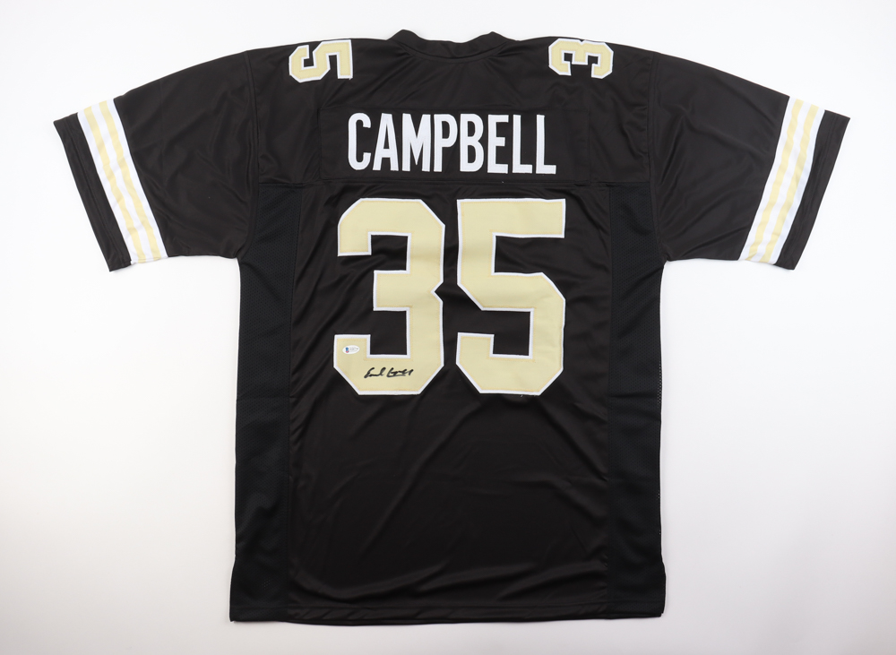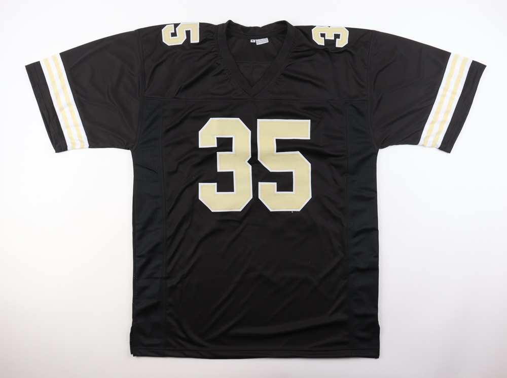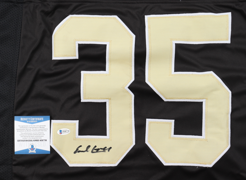 Custom football jersey with everything sewn on, size XL. Hand-signed by Earl Campbell (HOF).