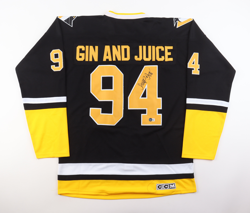 Custom hockey jersey with everything sewn on, size XL. Hand-signed by Snoop Dogg.