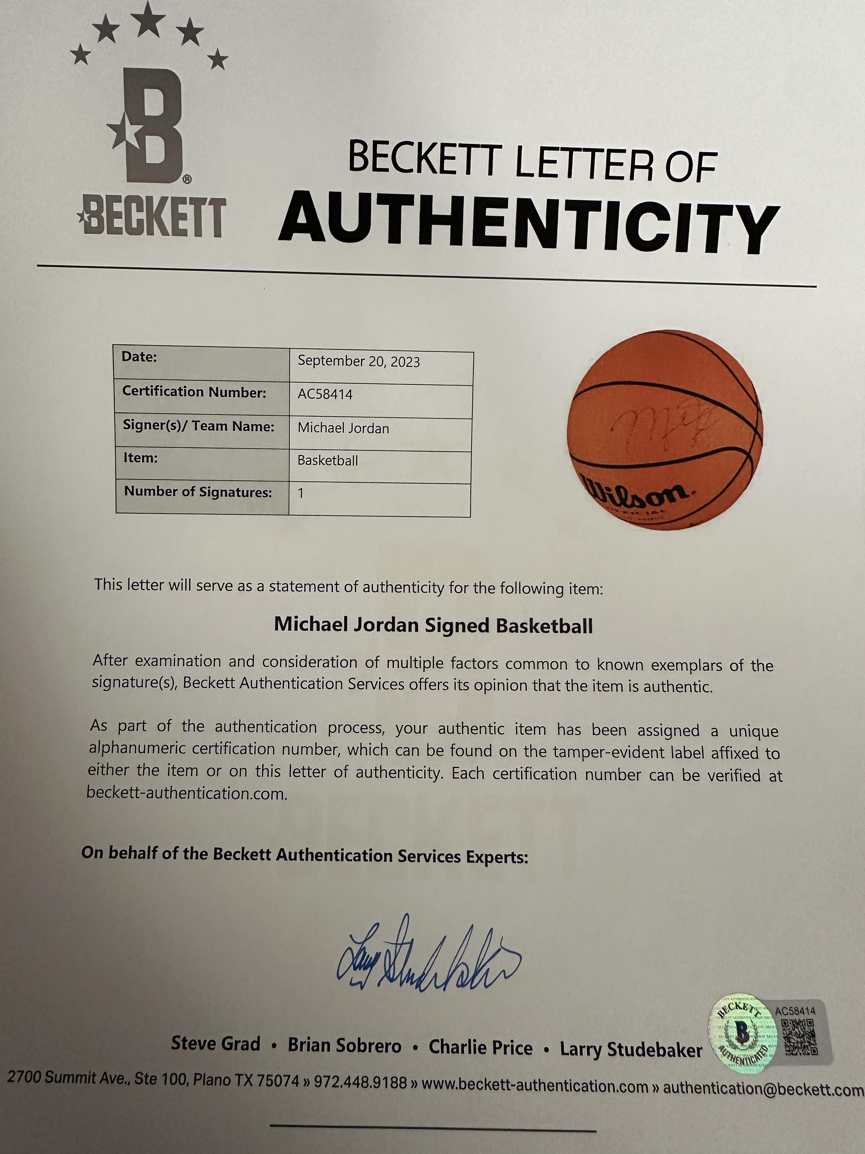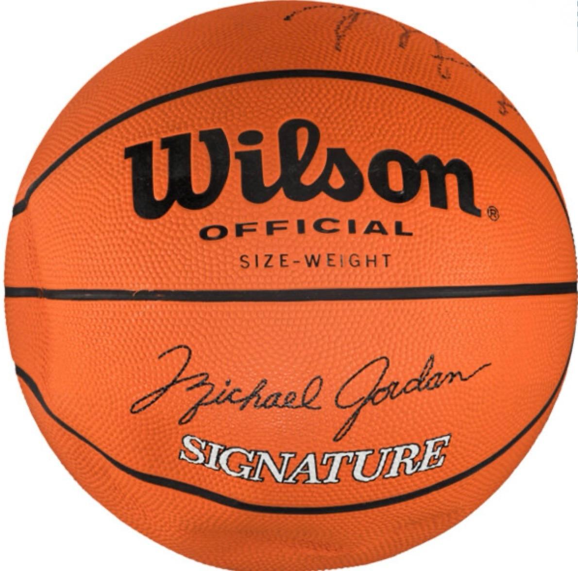 Wilson Official "Michael Jordan Signature" basketball has been hand-signed by Michael Jordan (Chicago Bulls, HOF). Please note, this basketball is no longer able to hold air and the signature is partly faded due to aging over time.
