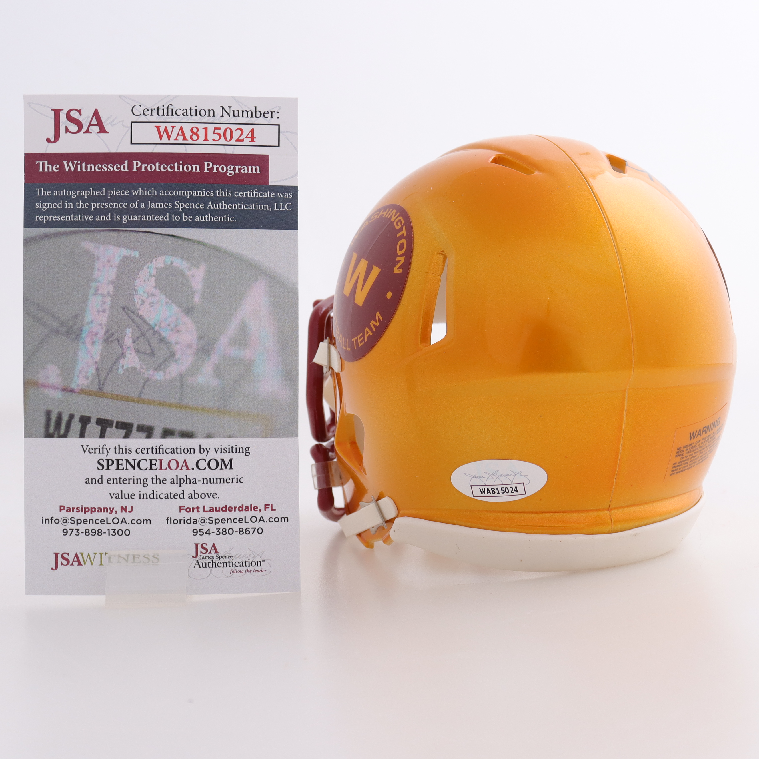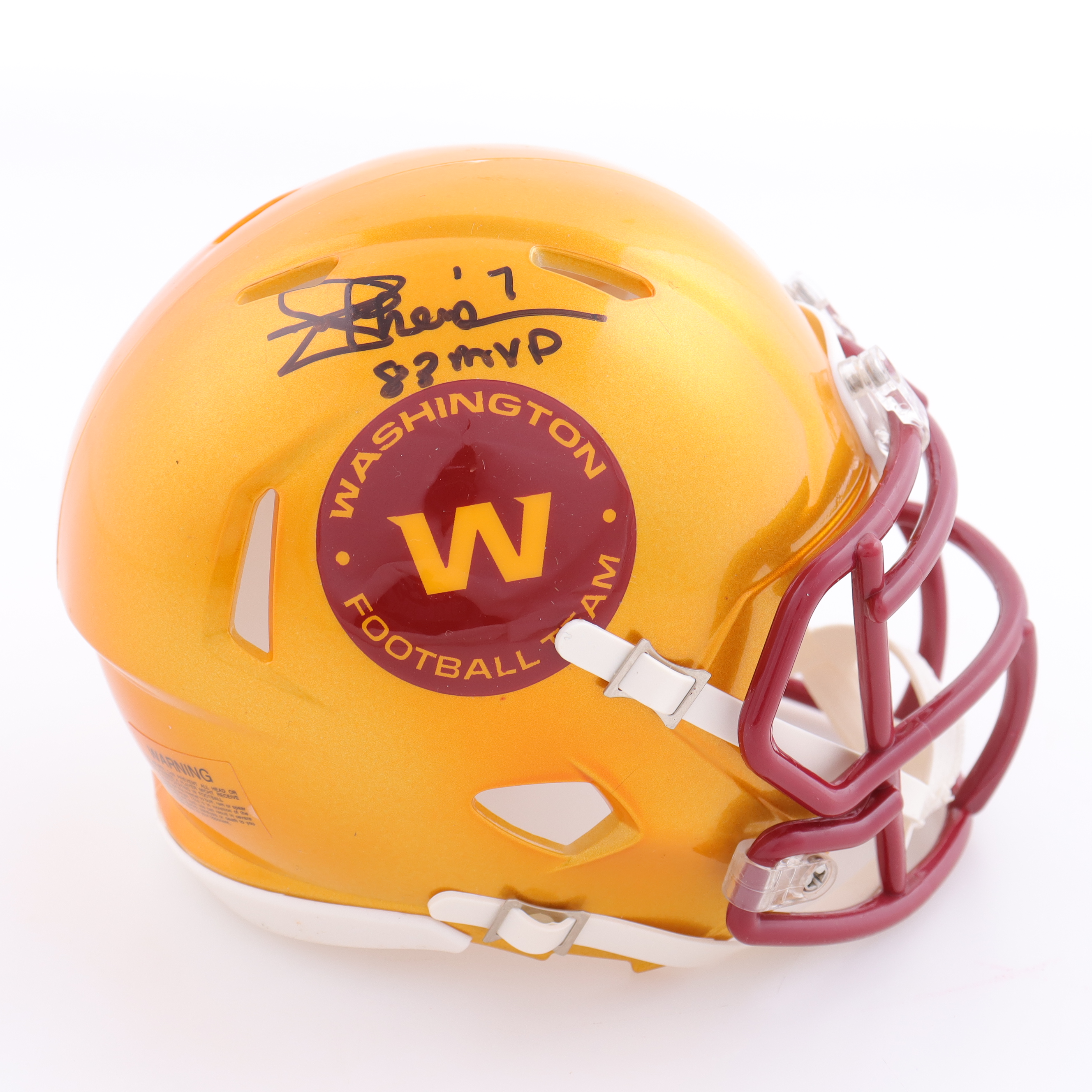 Riddell Washington Football Team flash alternate speed mini helmet. Hand-signed by Joe Theismann (HOF).