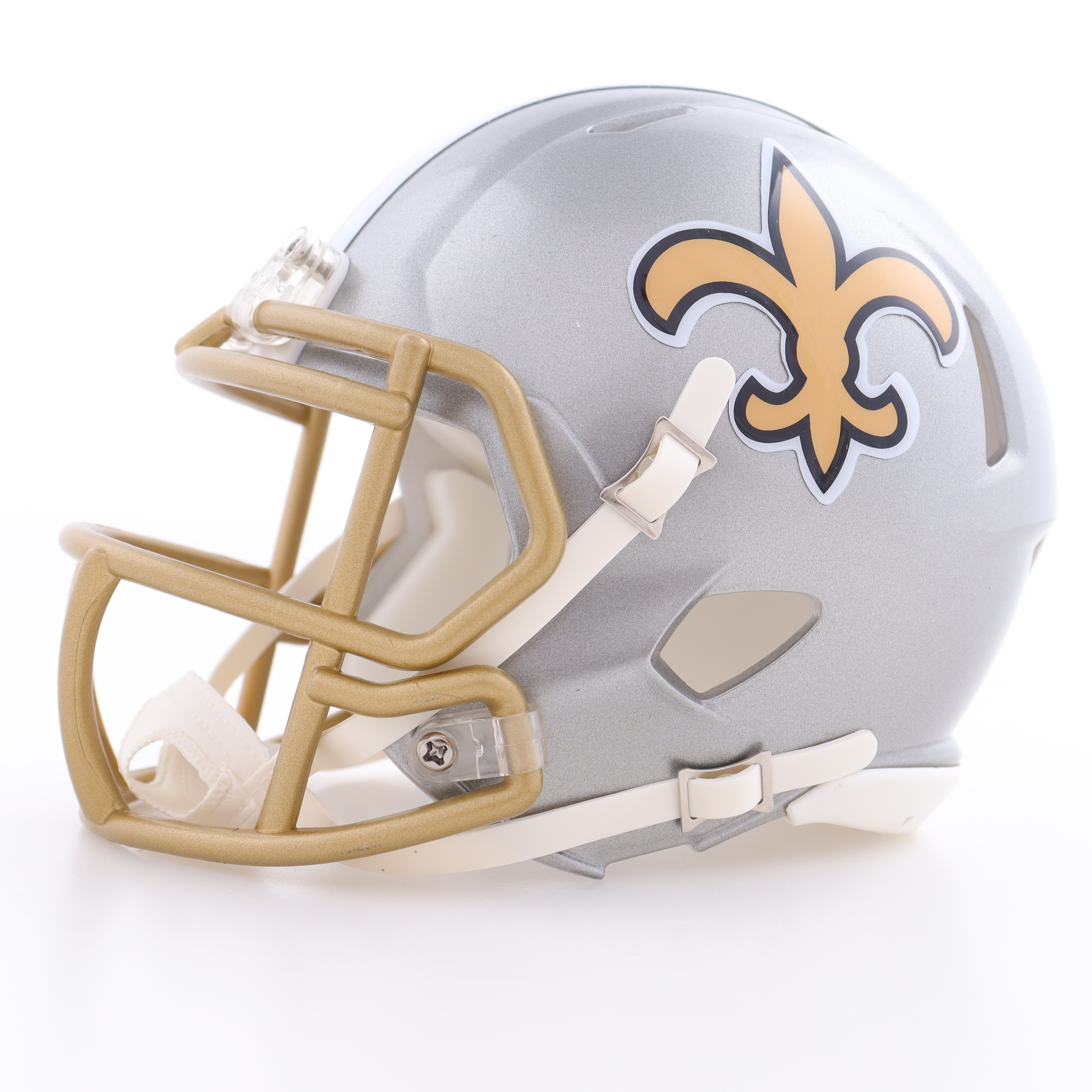 Riddell New Orleans Saints flash alternate speed mini helmet. Hand-signed by Isaiah Foskey.