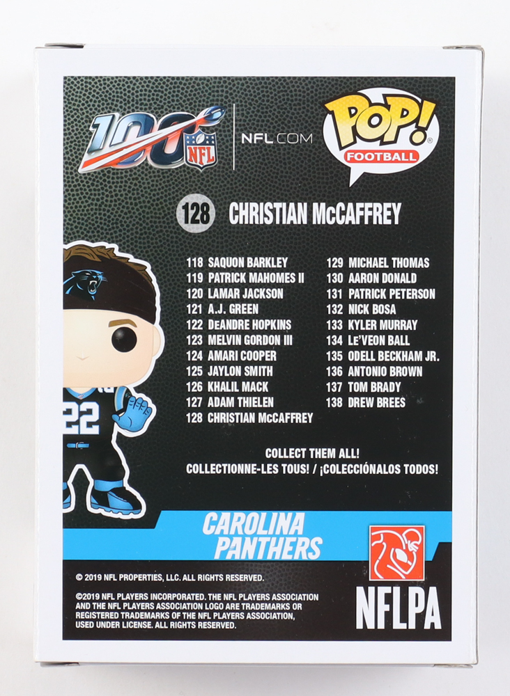 Christian McCaffrey Signed "Carolina Panthers" #128 Christian McCaffrey Funko Pop! Vinyl Figure (Beckett)