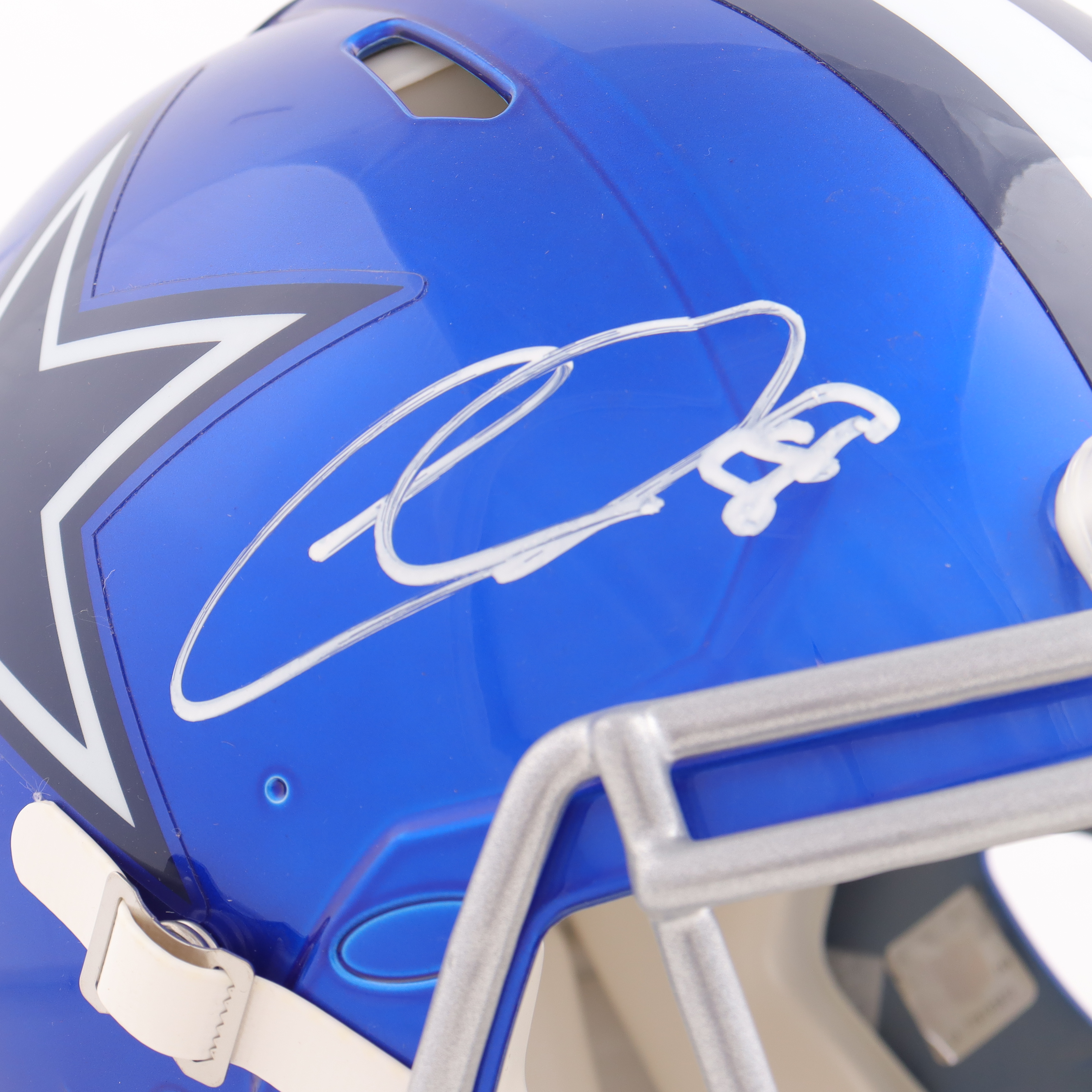 Riddell Dallas Cowboys full-size Authentic On-Field Flash Alternate Speed helmet. Hand-signed by CeeDee Lamb.