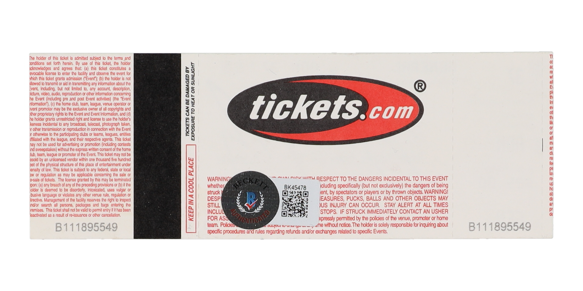 The autograph includes an official Beckett Authentication Services serially numbered hologram for authenticity purposes.