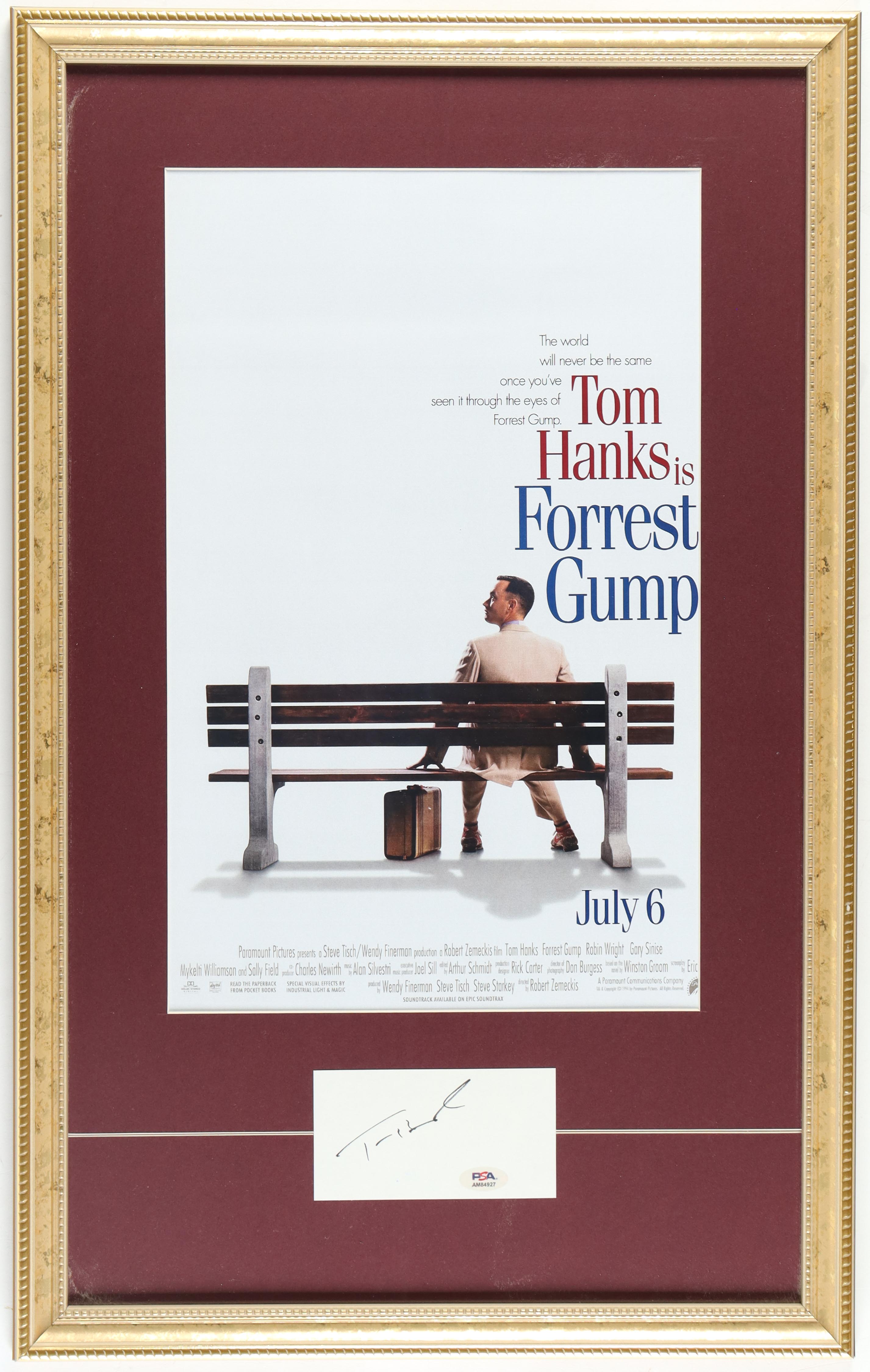 Custom framed display measures approximately 16.5" x 27" in size and features a cut that has been hand-signed by Tom Hanks.