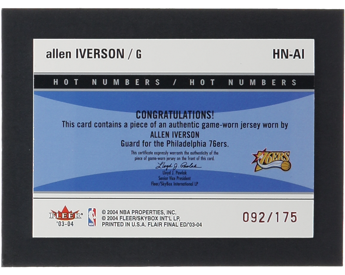 Allen Iverson 2003-04 Flair Final Edition Hot Numbers Jerseys 175 #AI #92/175