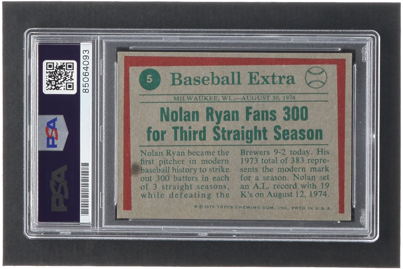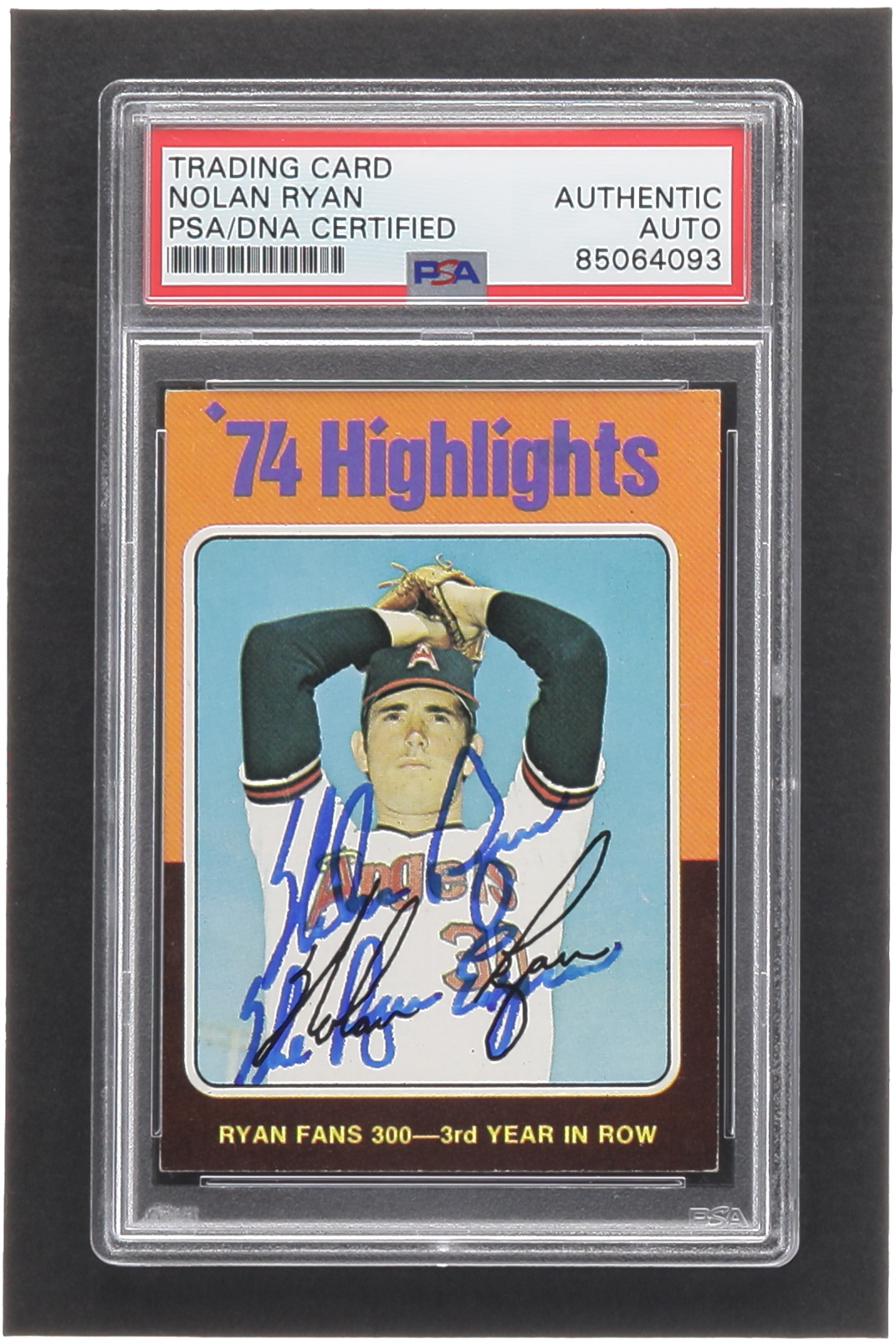 Nolan Ryan Signed 1975 Topps #5 HL / Fans 300 for 3rd Year in a Row Inscribed "The Ryan Express" (PSA)