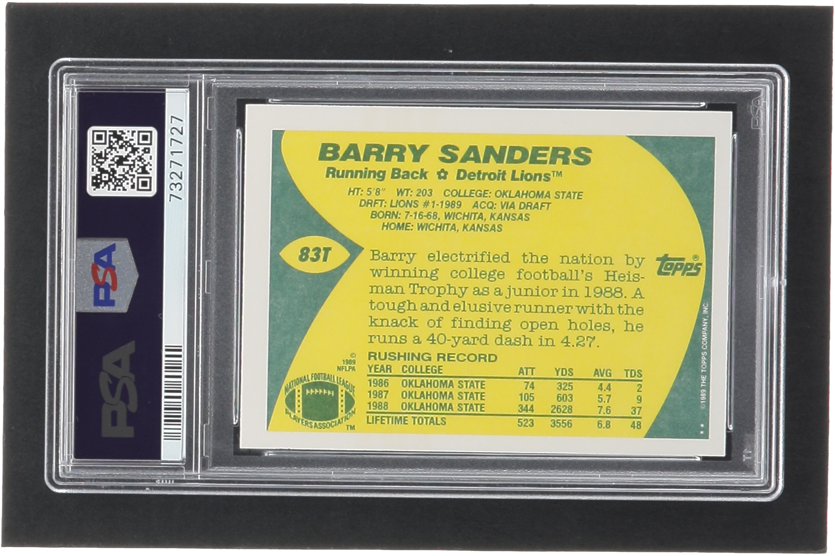 Barry Sanders 1989 Topps Traded #83T RC (PSA 9)