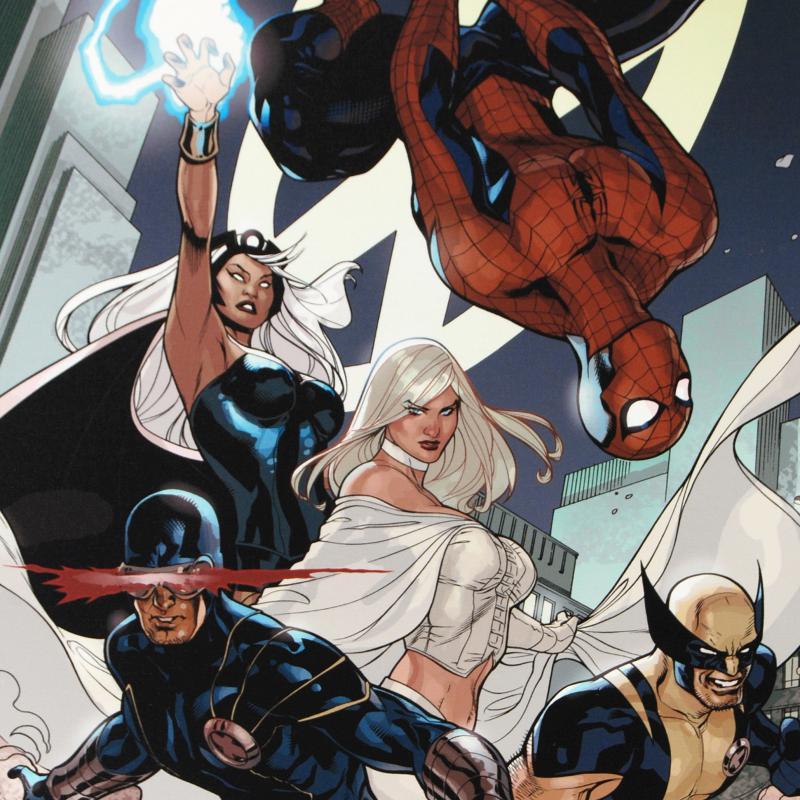 A piece of comic book history, this limited edition, from original art by Chris Bachalo, depicting an action backed Spider-Man. Known for his quirky style, Chris Bachalo has illustrated issues of X-Men Unlimited and Ghost Rider. "X-Men #7" is a limited edition giclee on canvas by Chris Bachalo, presented by Marvel Comics. This piece comes gallery wrapped. Measures approximately 18" x 27" (image); 1.5" (depth).