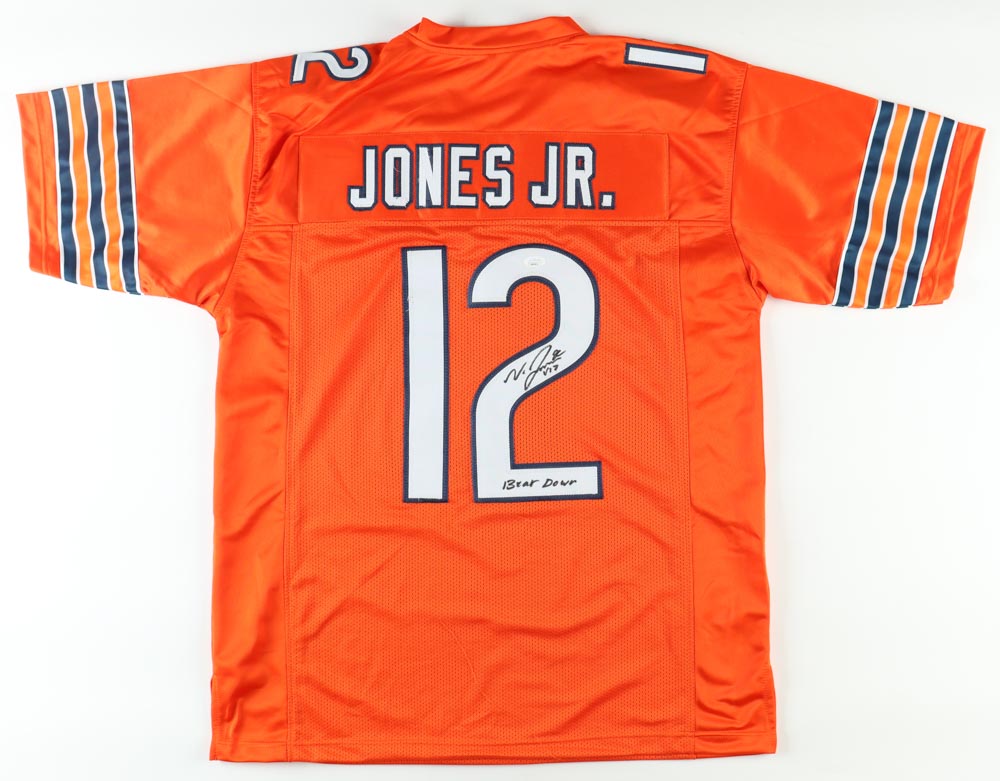 Custom jersey. Everything is sewn on, size XL. Hand-signed and inscribed by Velus Jones Jr.