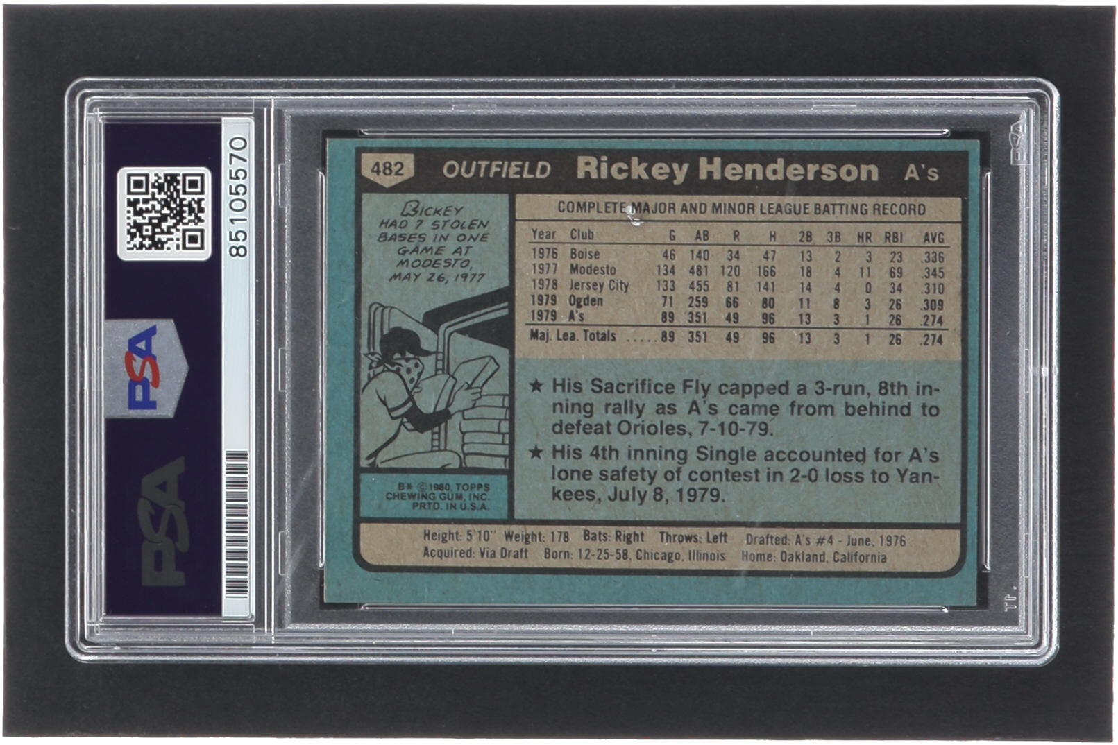 Rickey Henderson Signed 1980 Topps #482 RC (PSA | Autograph Graded PSA 10)