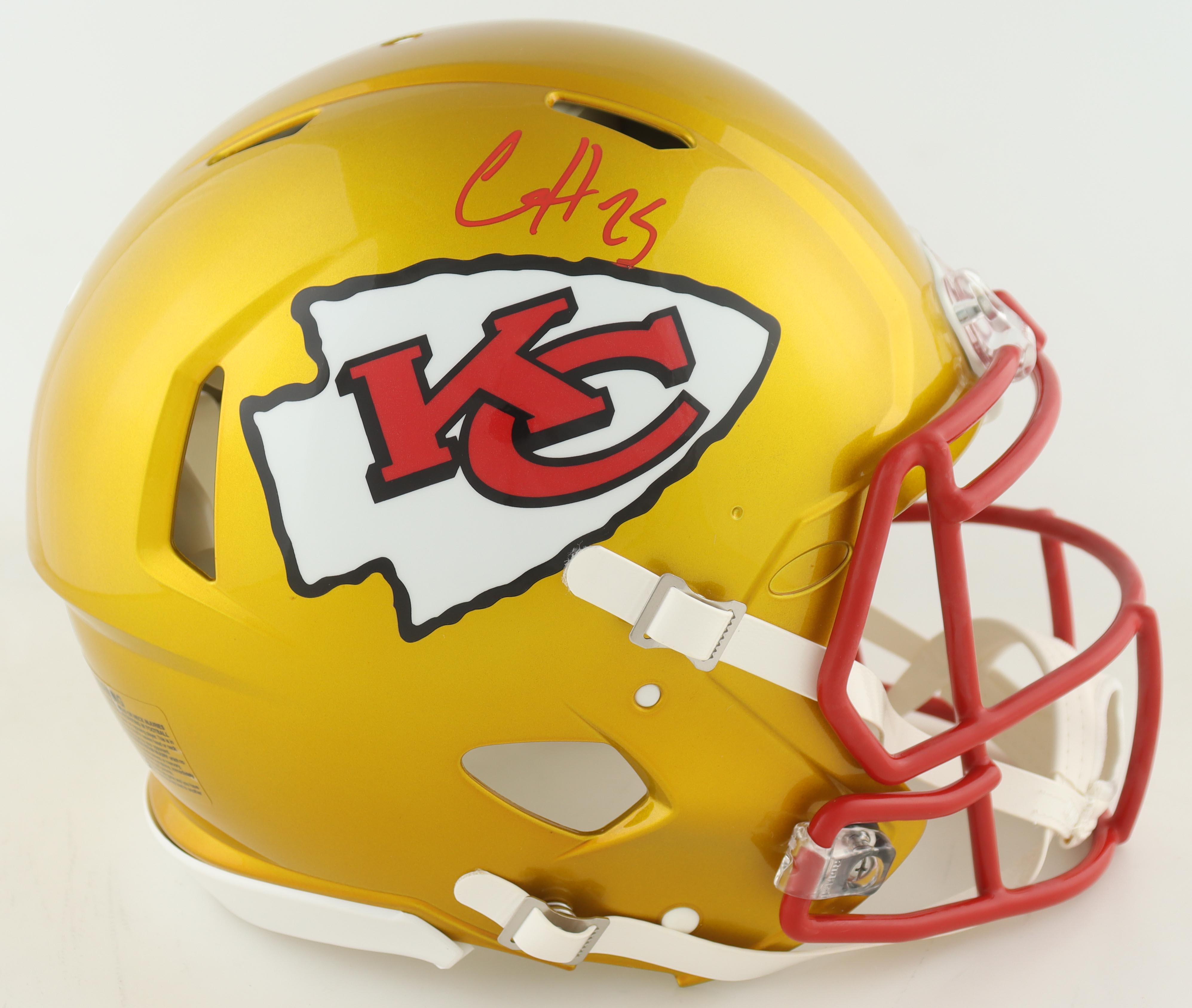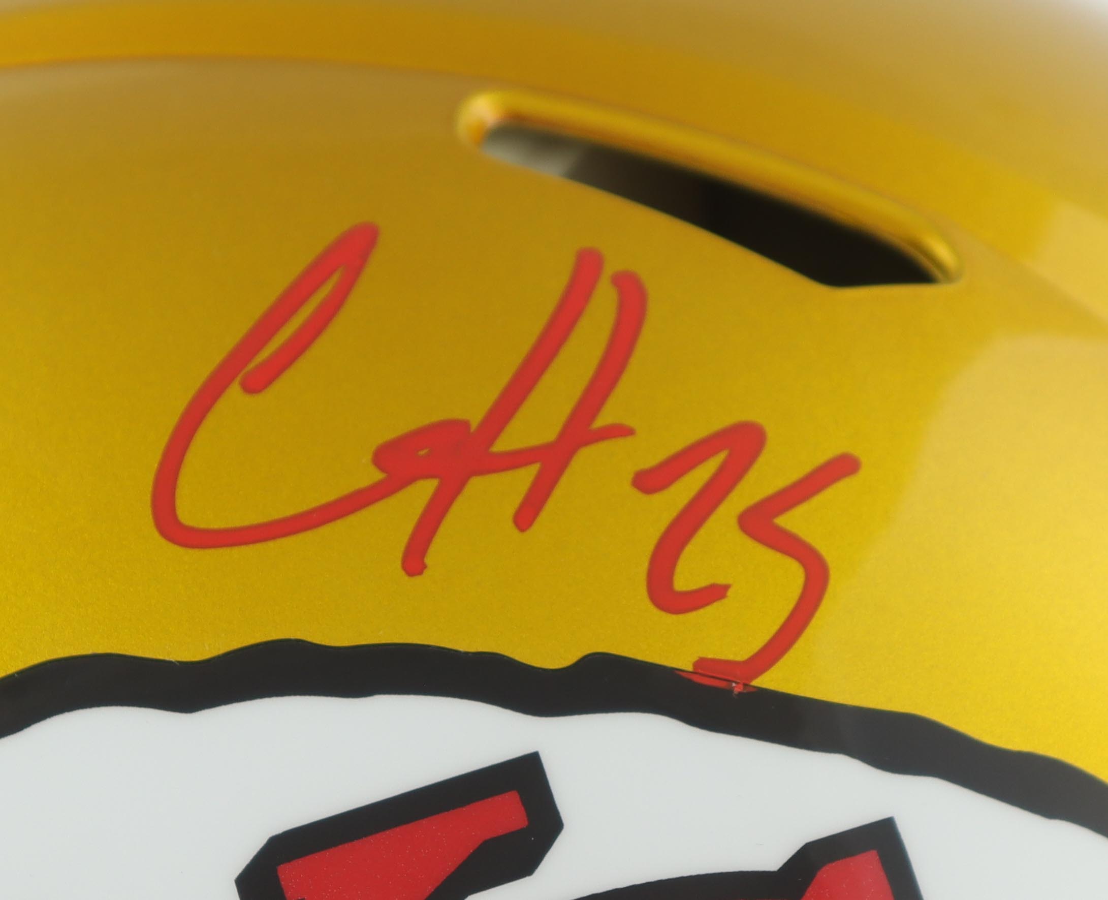 Riddell Kansas City Chiefs Full-Size Full-Size Authentic Flash Alternate Speed helmet. Hand-signed by Clyde Edwards-Helaire.