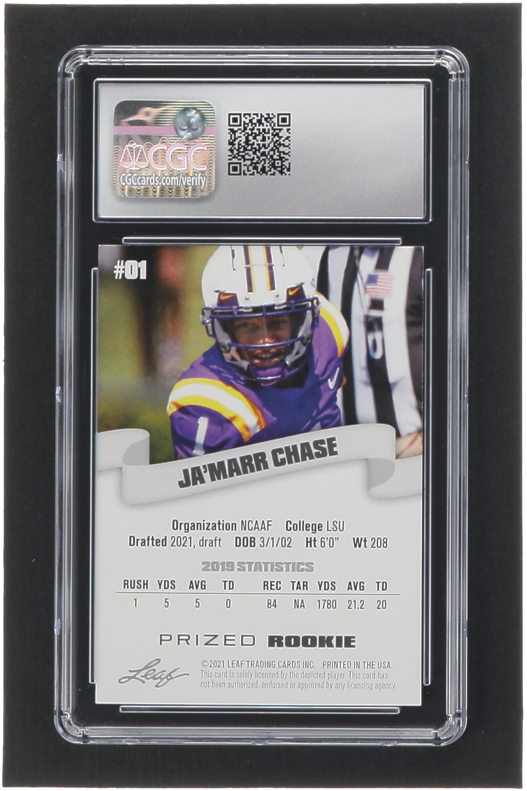 Ja'Marr Chase 2021 Leaf Special Release Prized Rookie #01 RC (CGC 9)