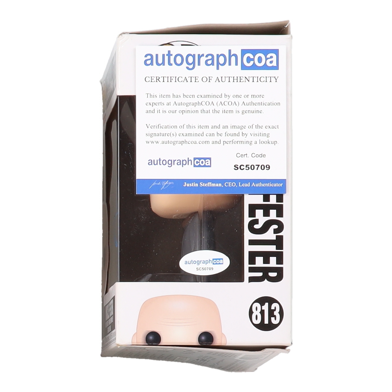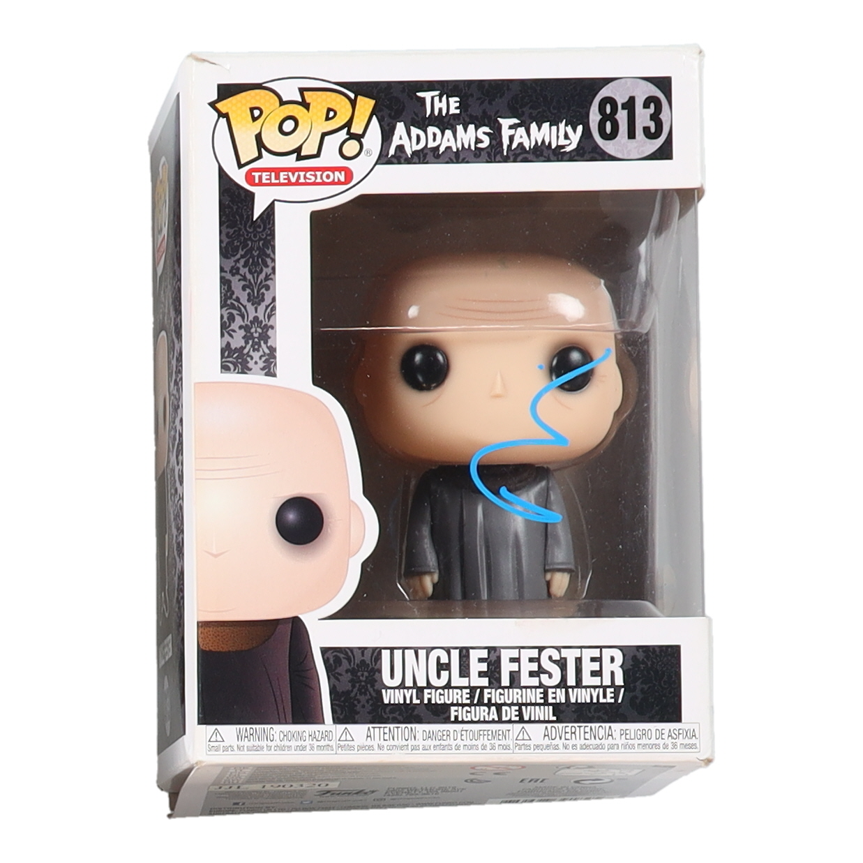 Funko Pop! vinyl figure measures approximately 4" in height and has been hand-signed on the packaging by Fred Armisen (Uncle Fester Addams). Please note, the window has been swapped.