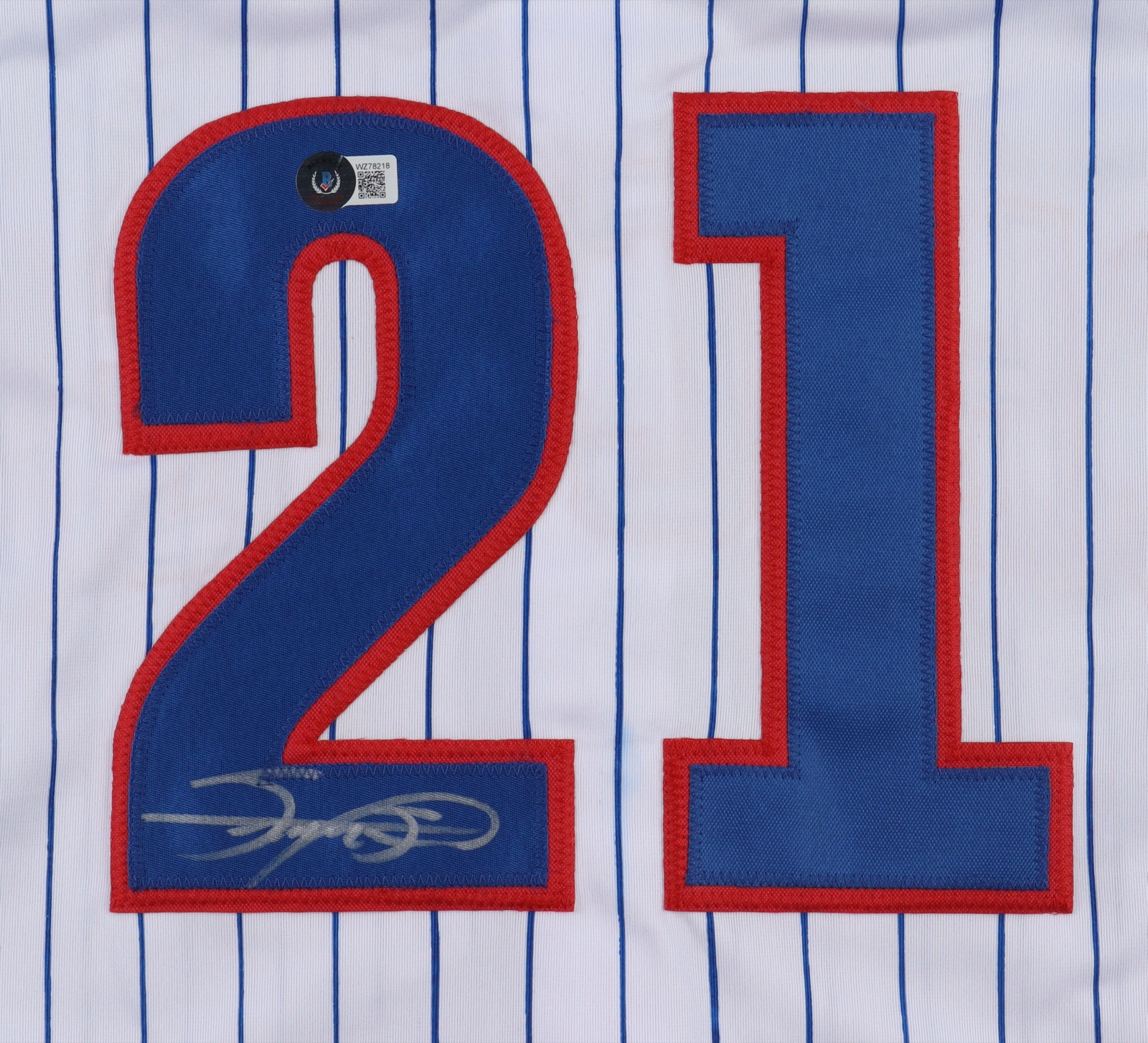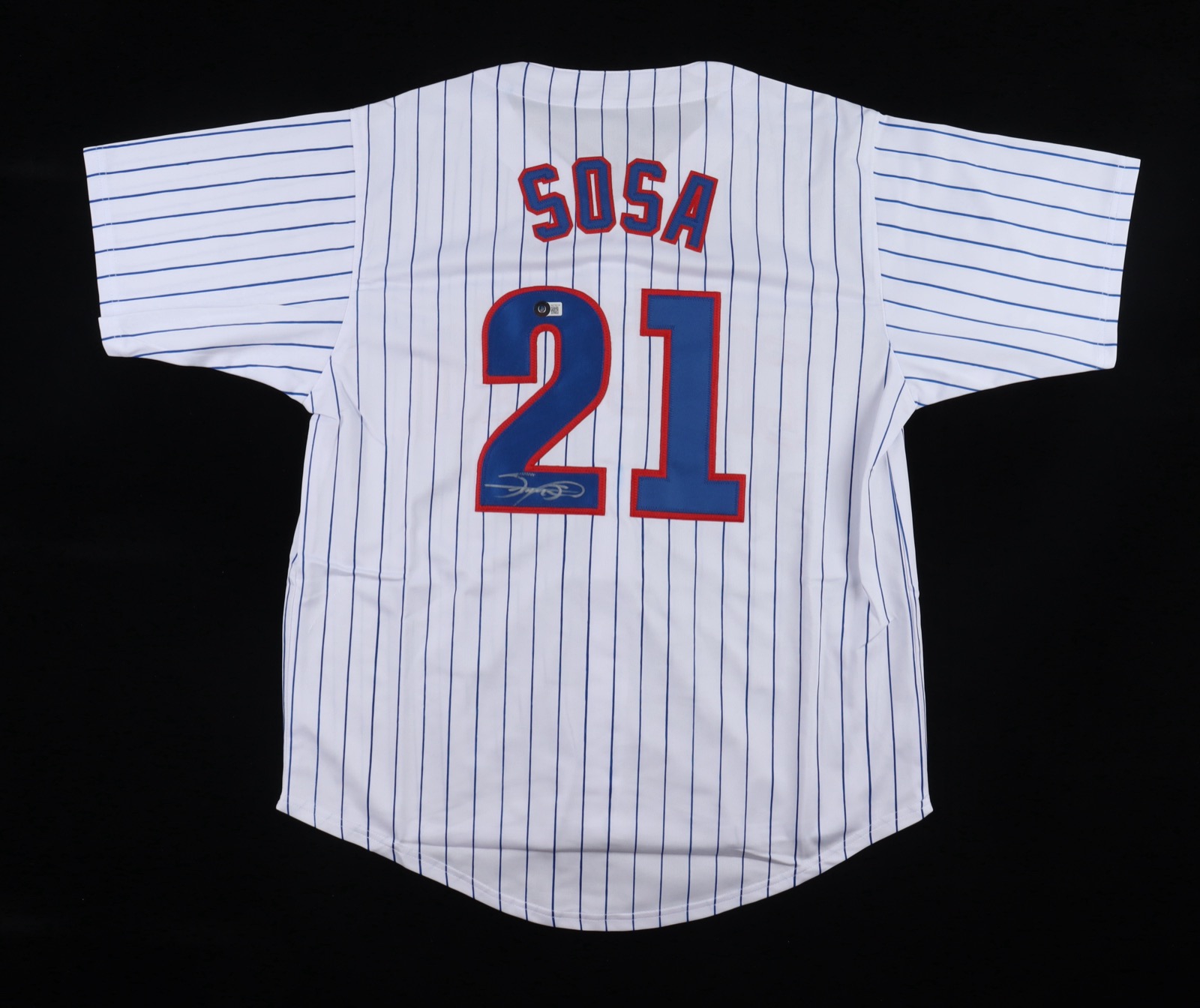 Custom jersey. Everythig sewn on, size XL. Hand-signed by Sammy Sosa (Chicago Cubs).
