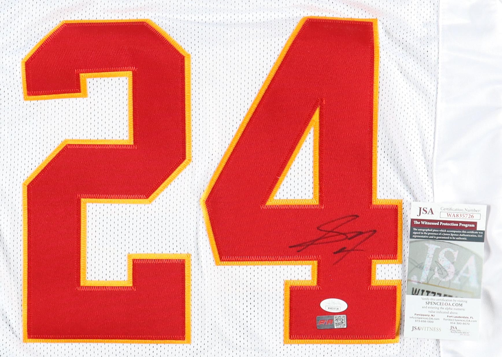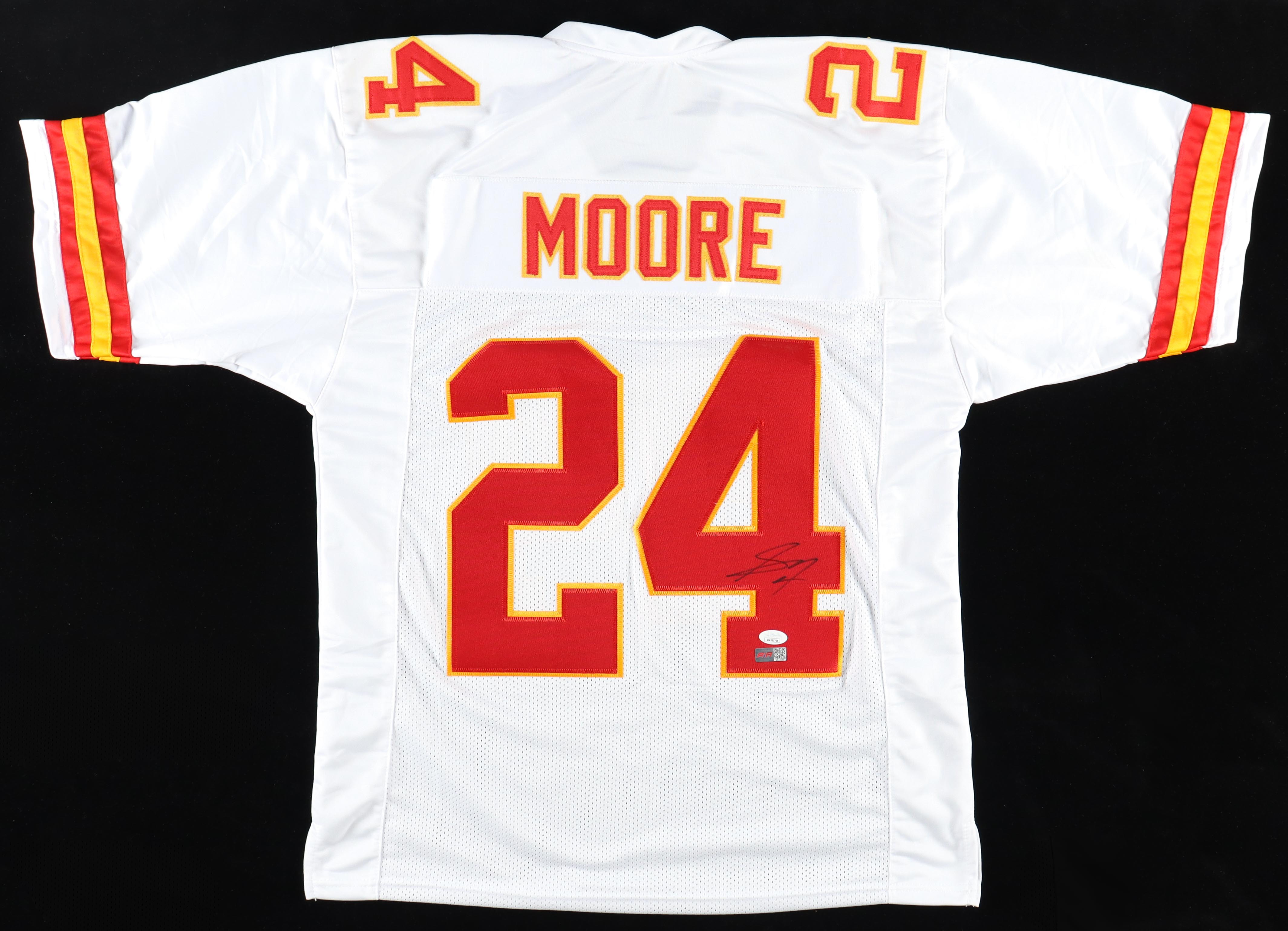Custom football jersey. Everything sewn on, size XL. Hand-signed by Skyy Moore (Kansas City Chiefs).