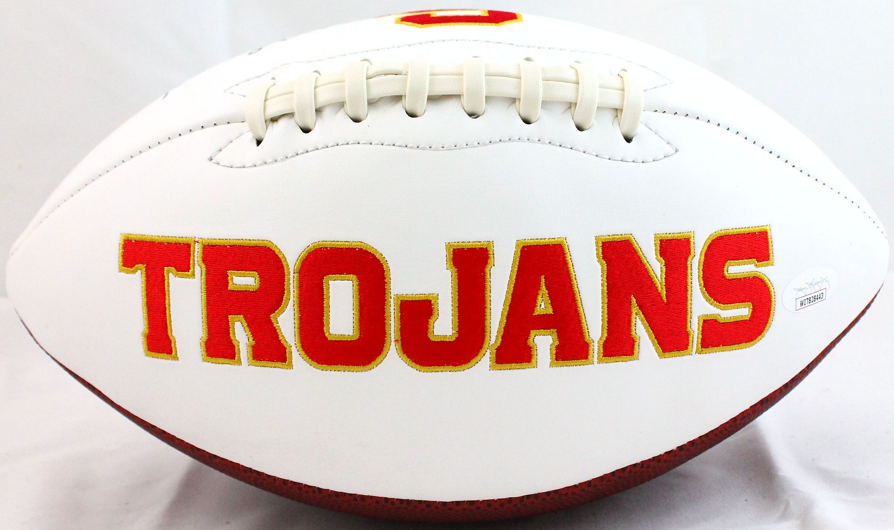 USC Trojans logo football. Hand-signed and inscribed by O. J. Simpson (HOF, D. 2024).