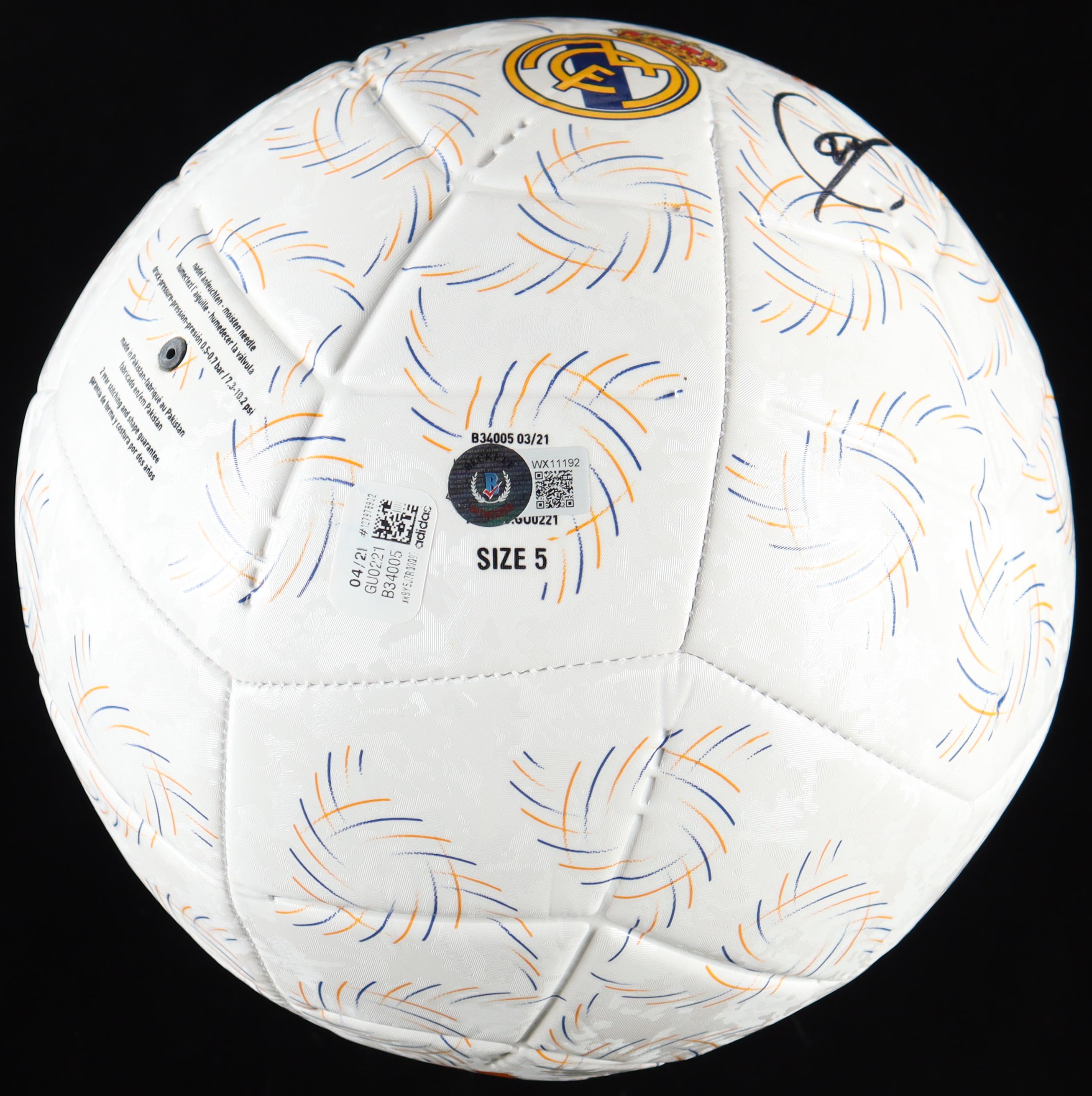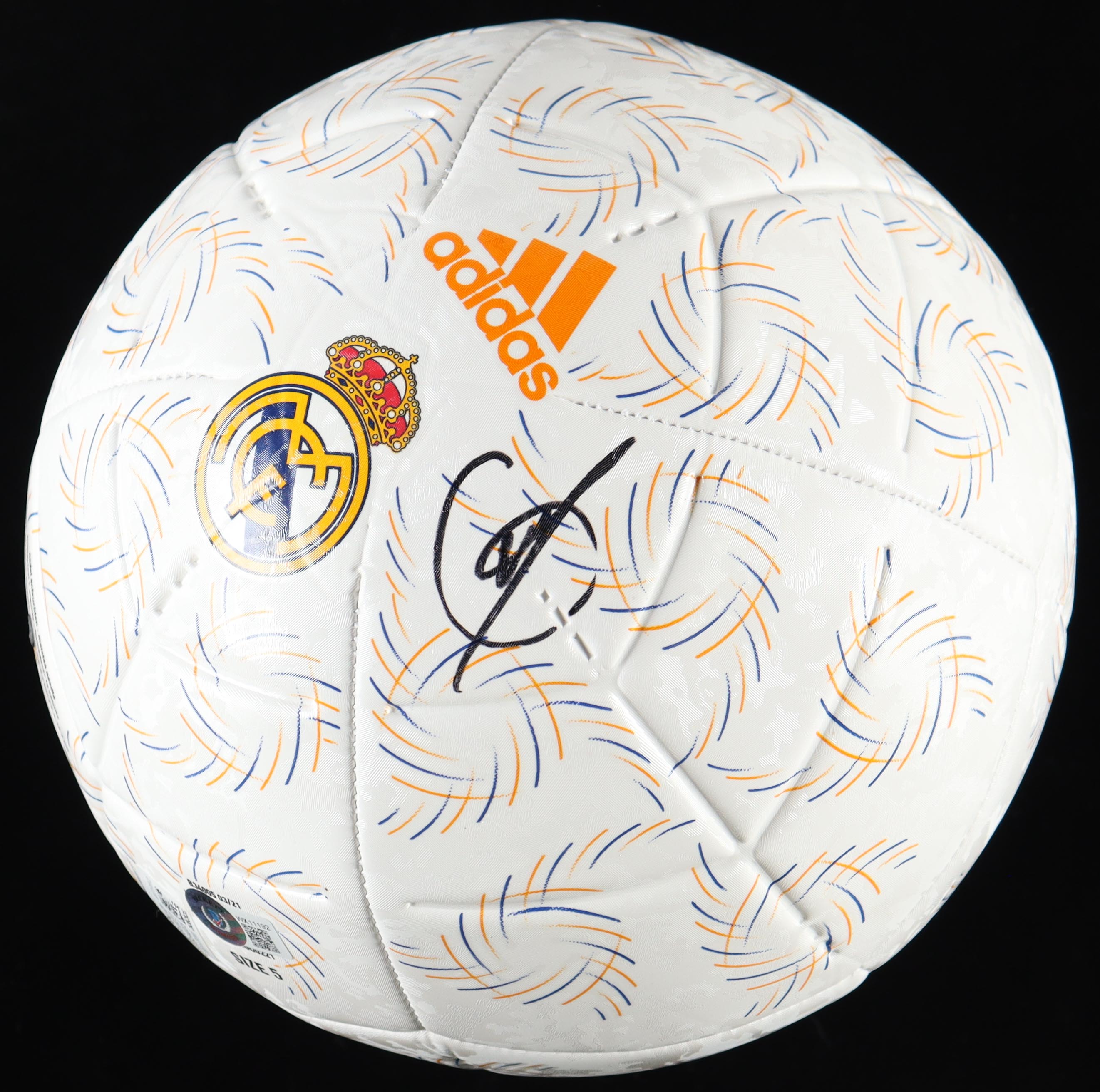 Adidas Real Madrid soccer ball. Hand-signed by Eduardo Camavinga (Real Madrid).