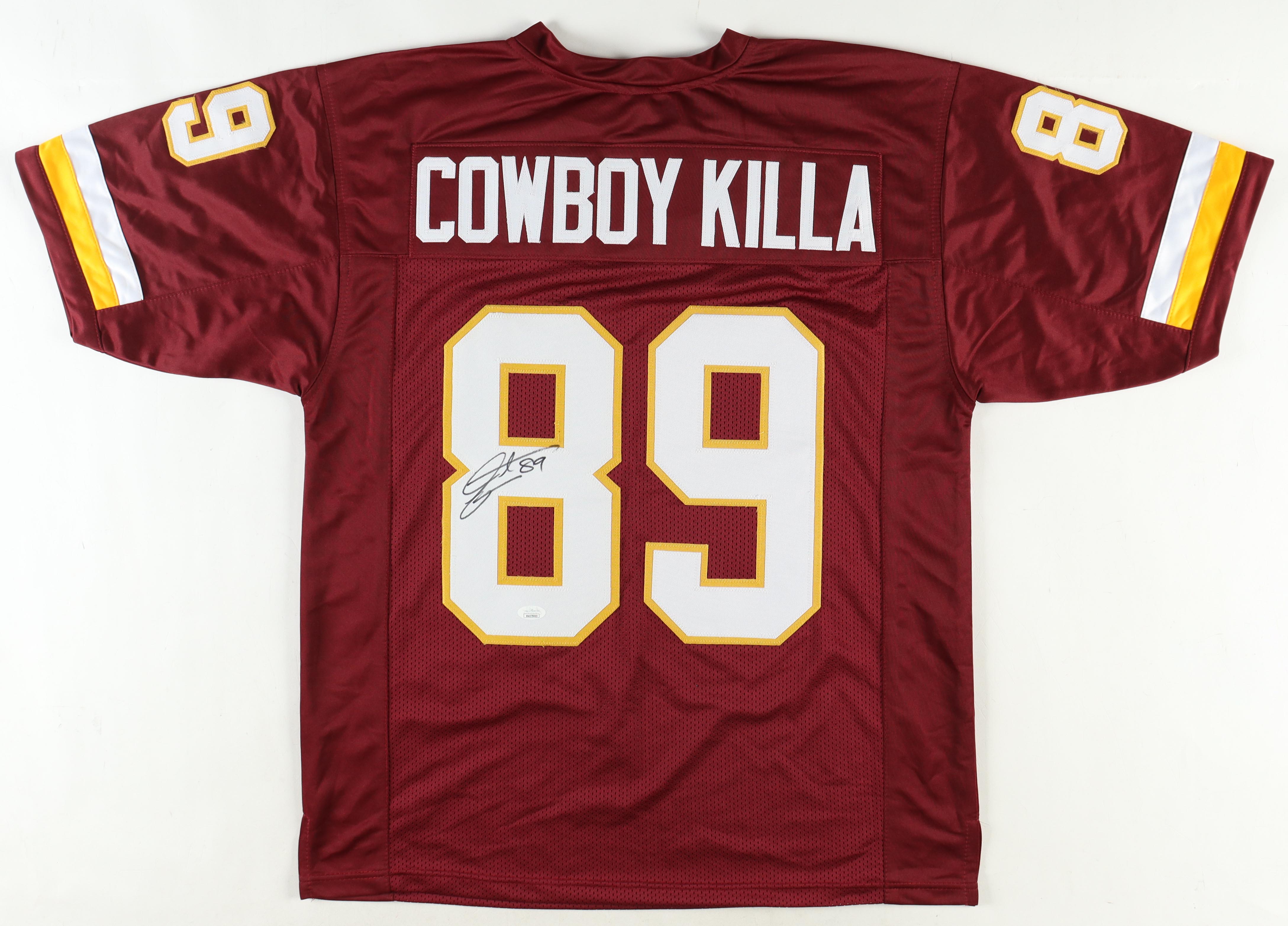 Custom jersey. Everything sewn on, size XL. Hand-signed by Santana Moss.