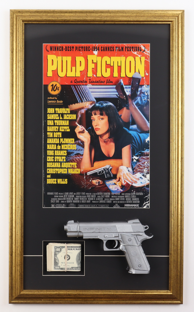 "Pulp Fiction" Custom Framed Movie Poster Display with Movie Prop Replica Money & Pistol