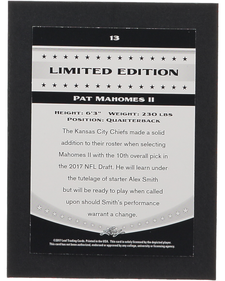 Pat Mahomes II 2017 Leaf Special Release Limited Edition #13 RC