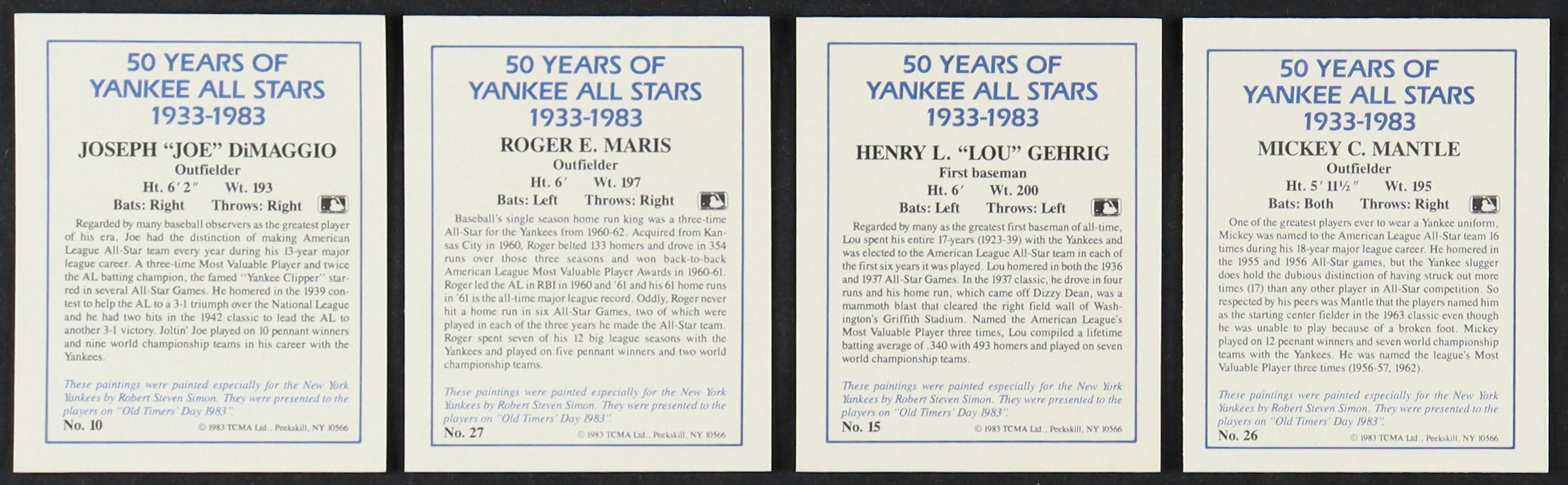1983 Yankees All Stars TCMA Complete Set of (50) Baseball Cards In Binder