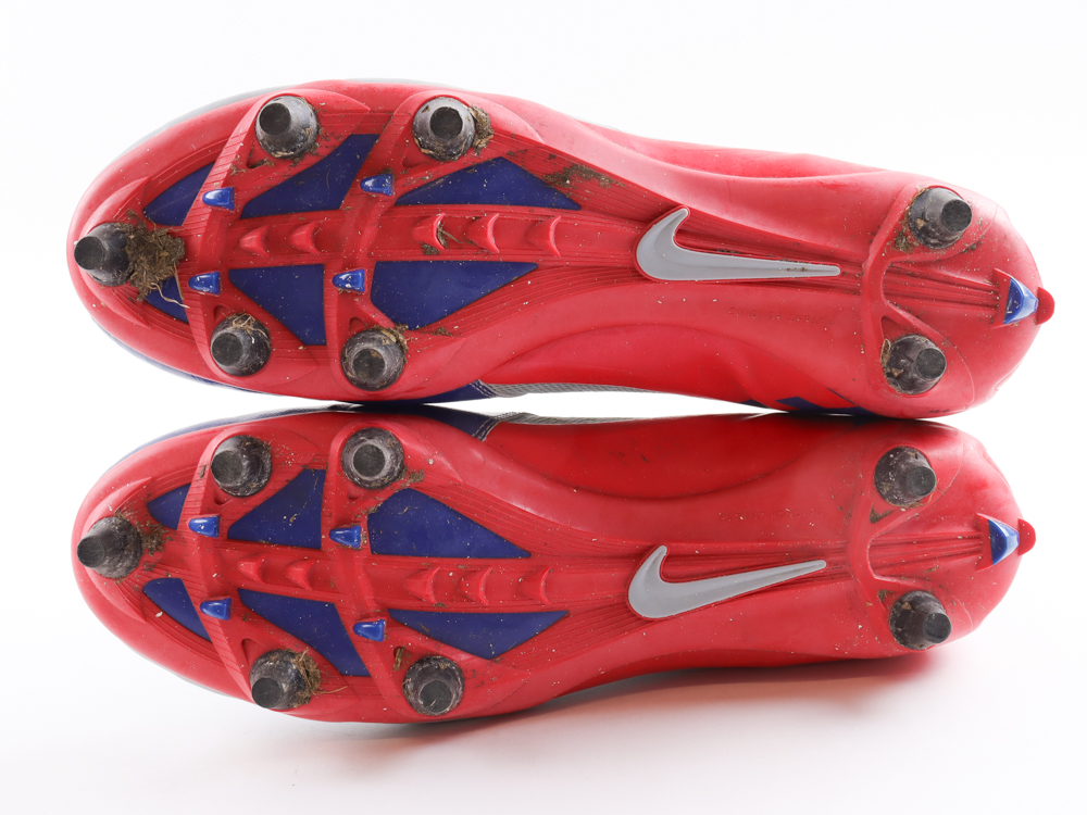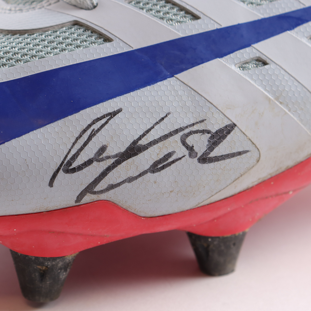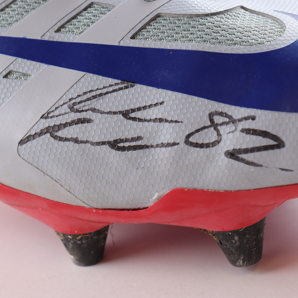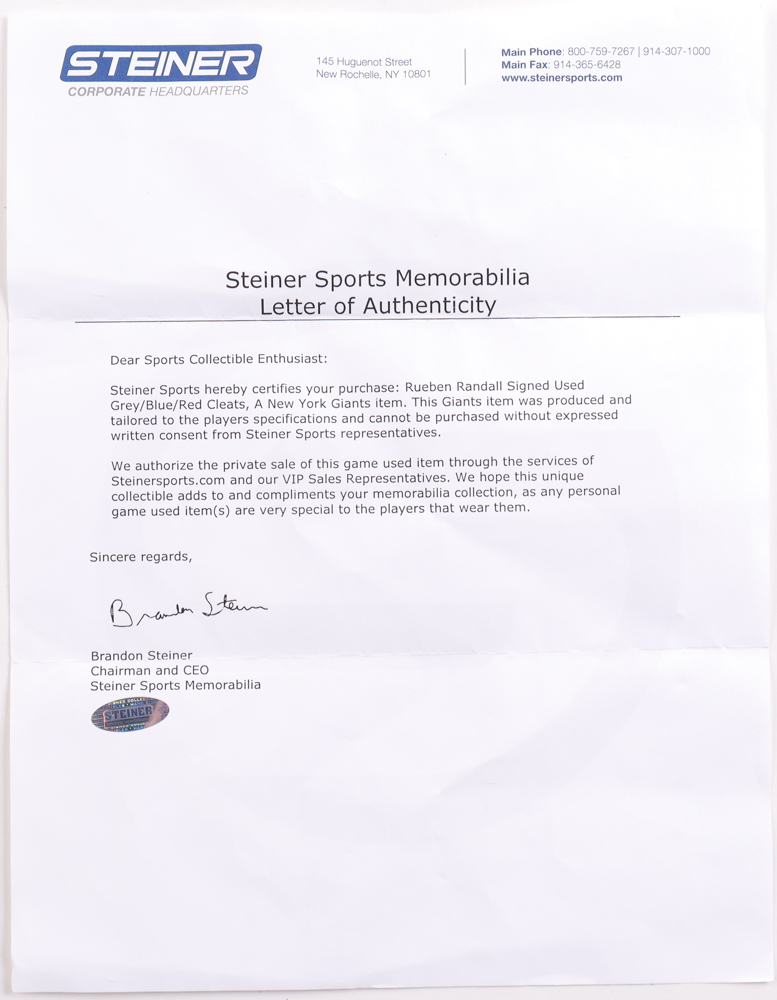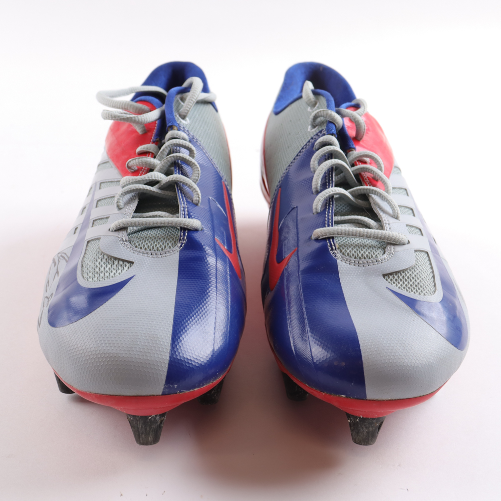 Nike Game-Used football cleat, size 14. Hand-signed by Rueben Randall (New York Giants). Please note, the cleat has been game-used.